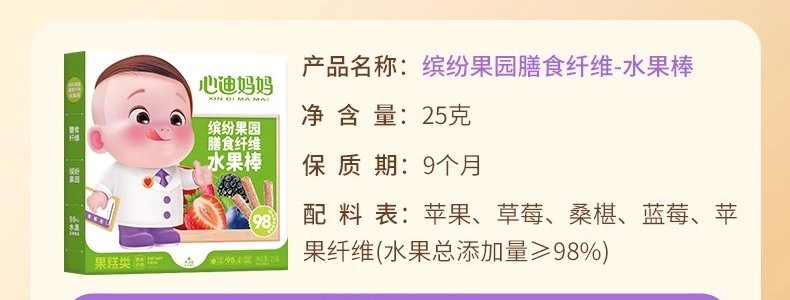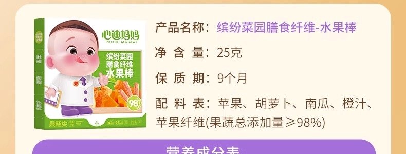 商品名称:心迪妈妈 迪敏水果棒 山楂鸡内金味 25g