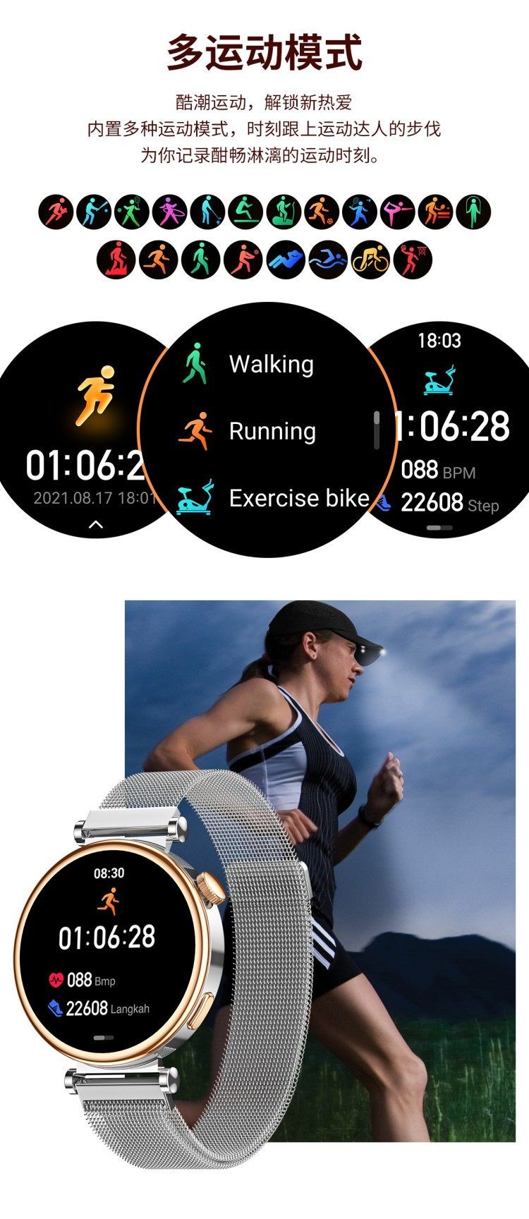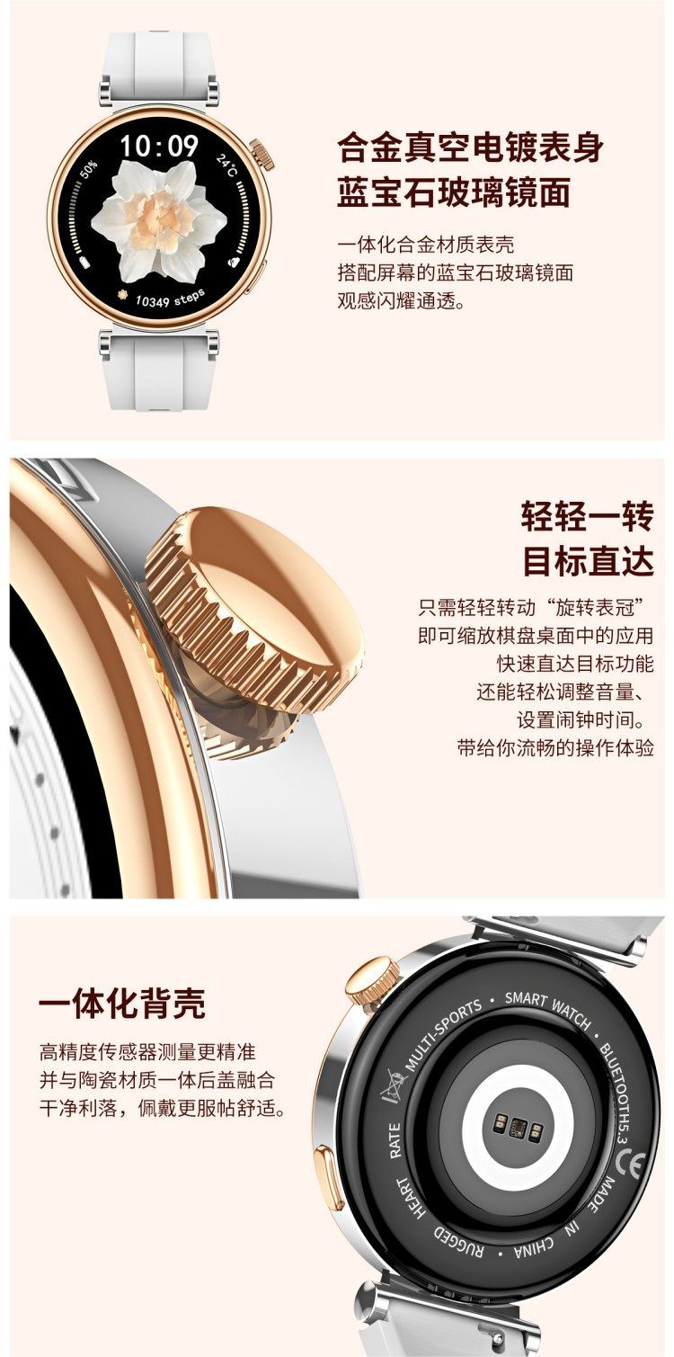 商品名称:LEFIT勒菲特GT4mini女性智能蓝牙通话手表多功能运动心率血压音乐通用代计步健康