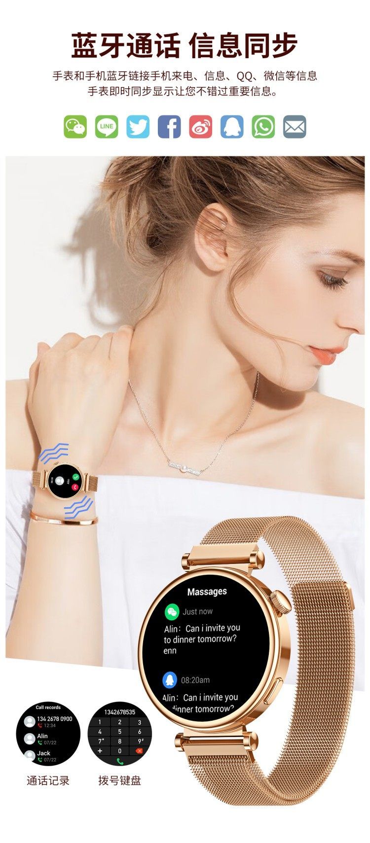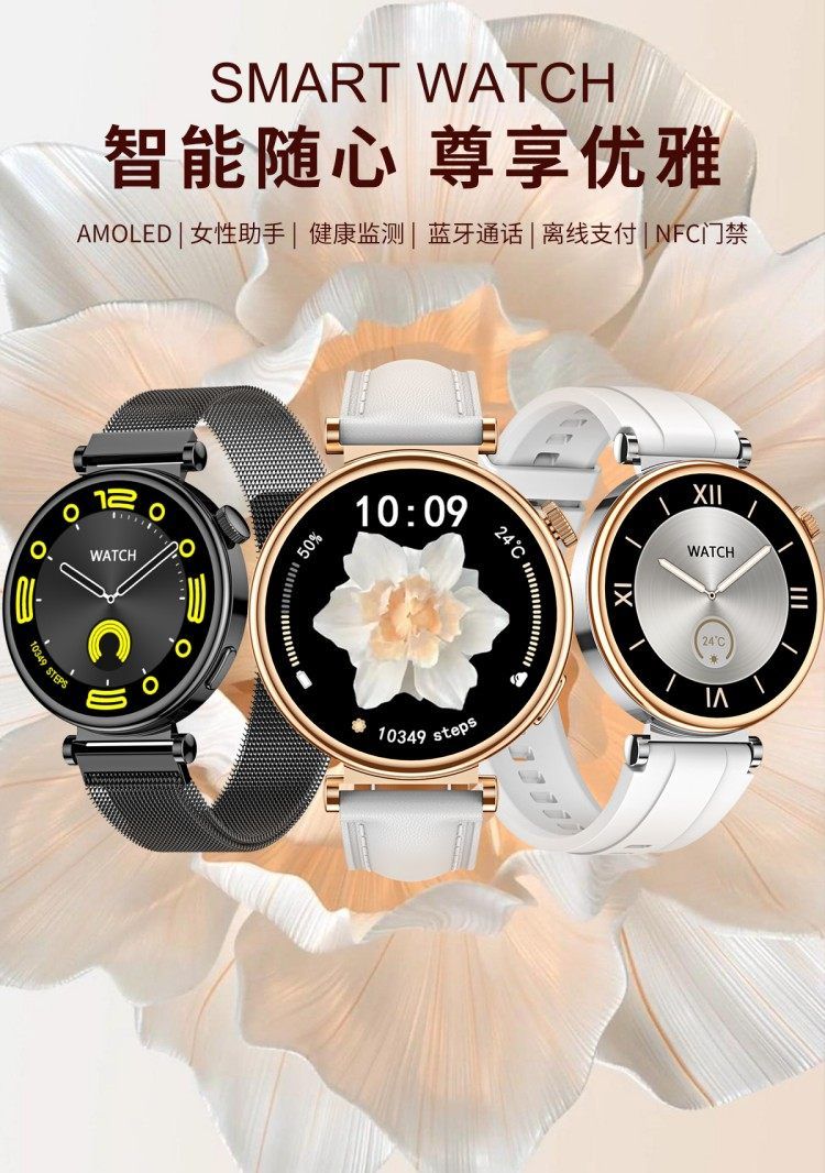 LEFIT勒菲特GT4mini女性智能蓝牙通话手表多功能运动心率血压音乐通用代计步健康