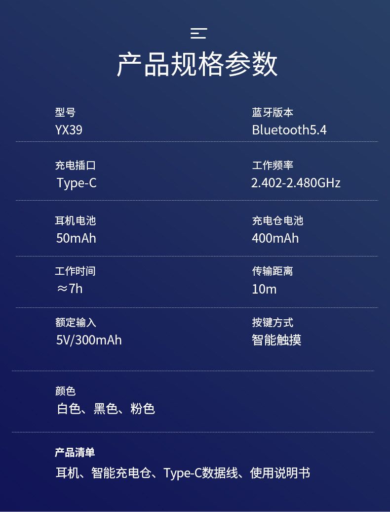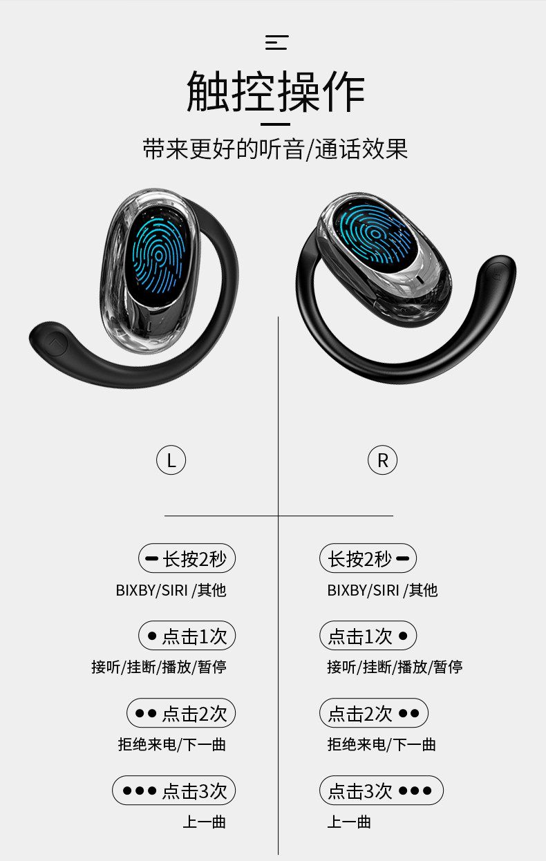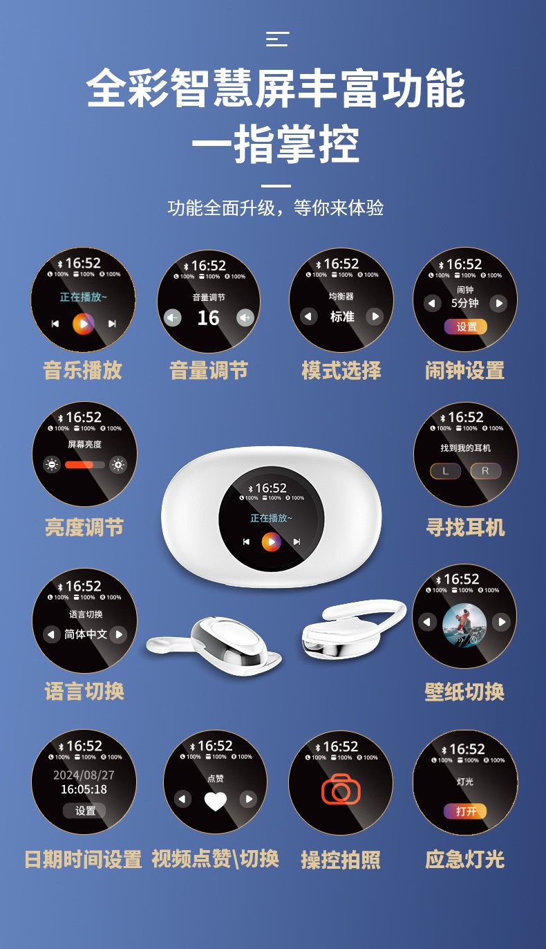 商品名称:LEFIT勒菲特 YX39开放式不入耳LED彩色大屏幕显示OWS蓝牙耳机挂耳式
