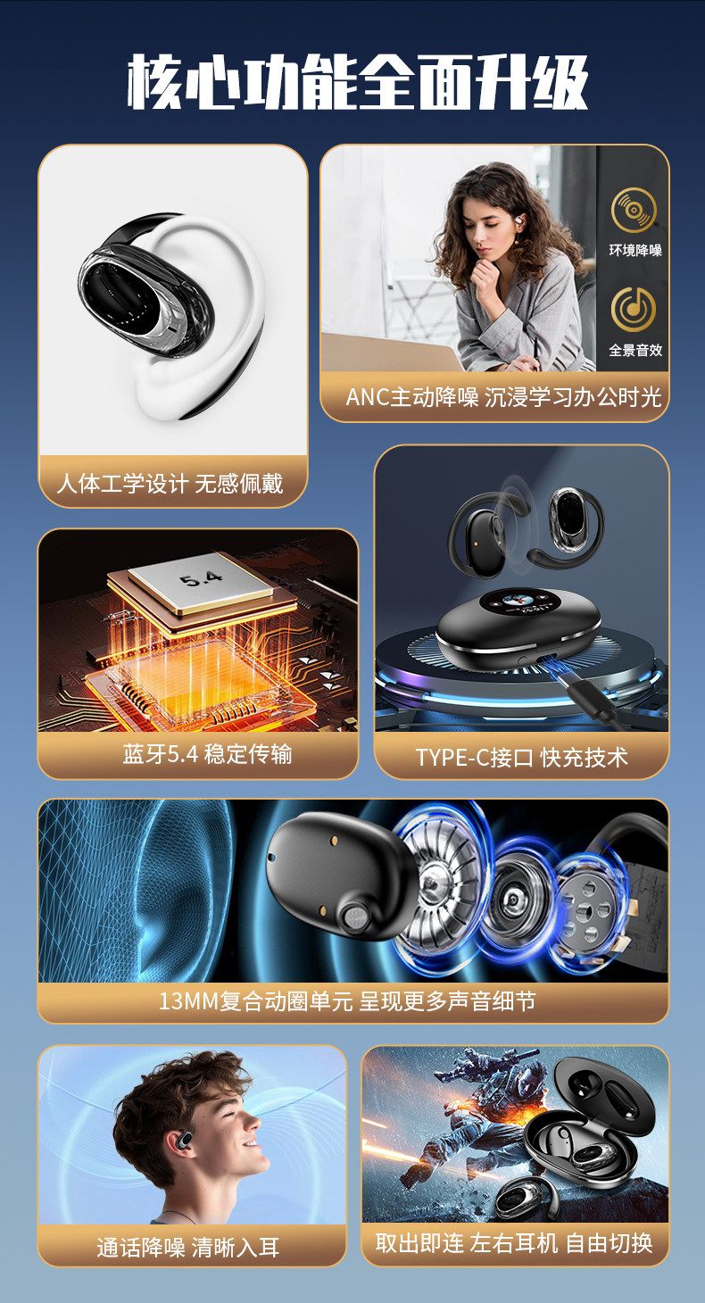LEFIT勒菲特 YX39开放式不入耳LED彩色大屏幕显示OWS蓝牙耳机挂耳式