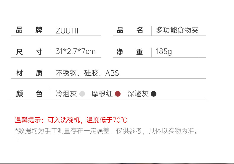 商品名称:zuutii不锈钢硅胶多功能食物夹