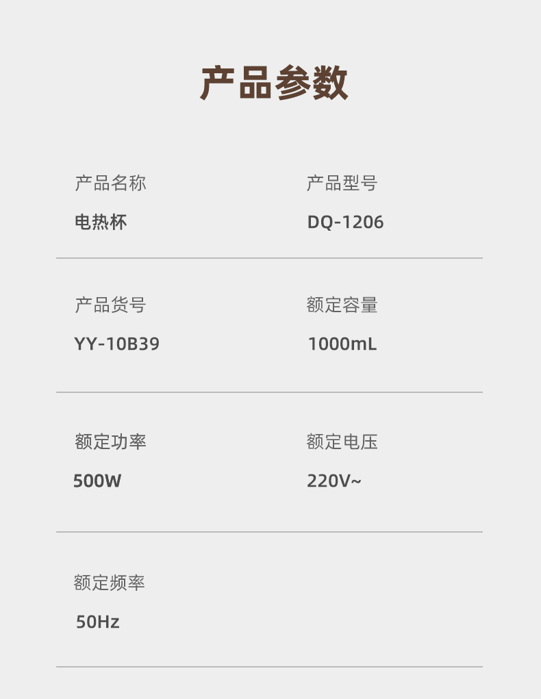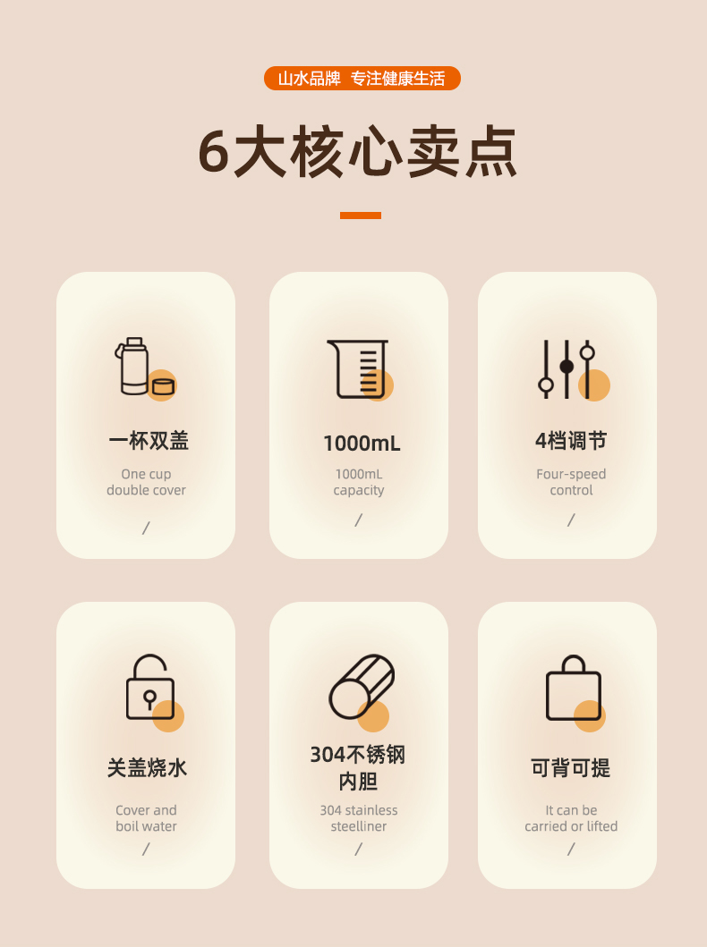 商品名称:SANSUI/山水1000毫升便携电热水杯YY-10B39