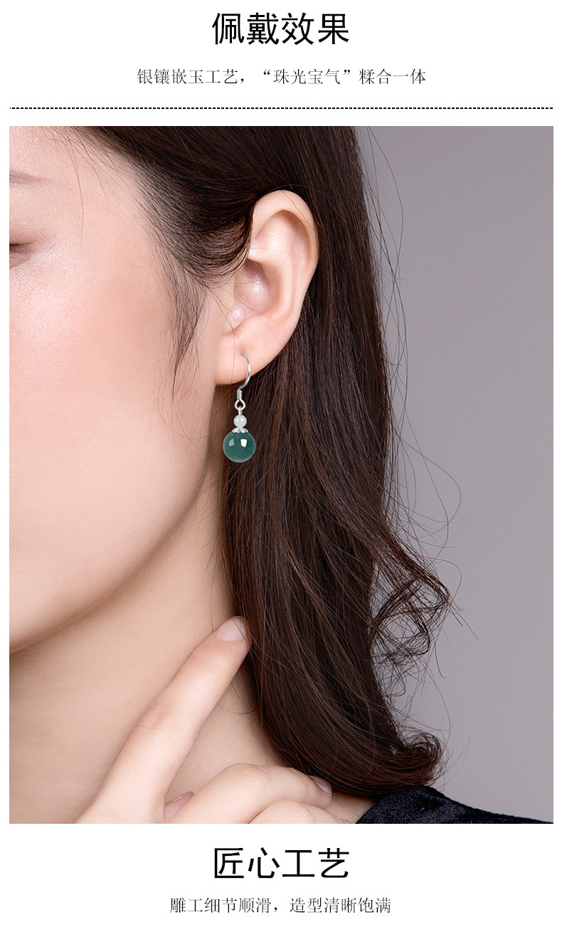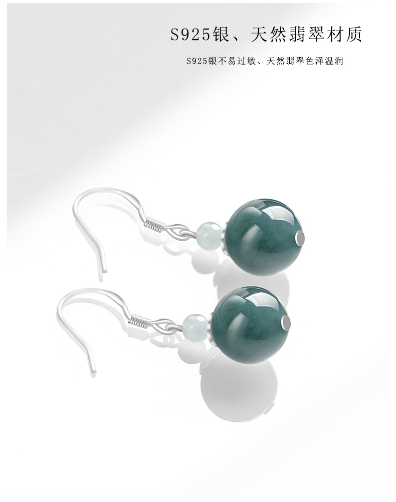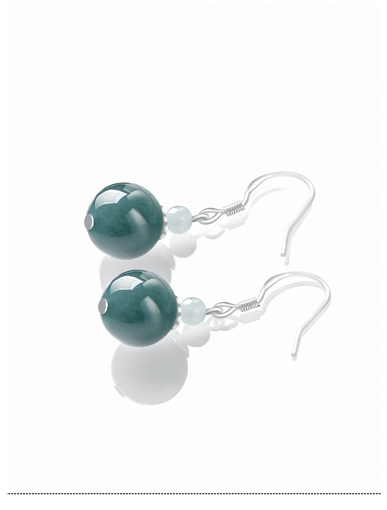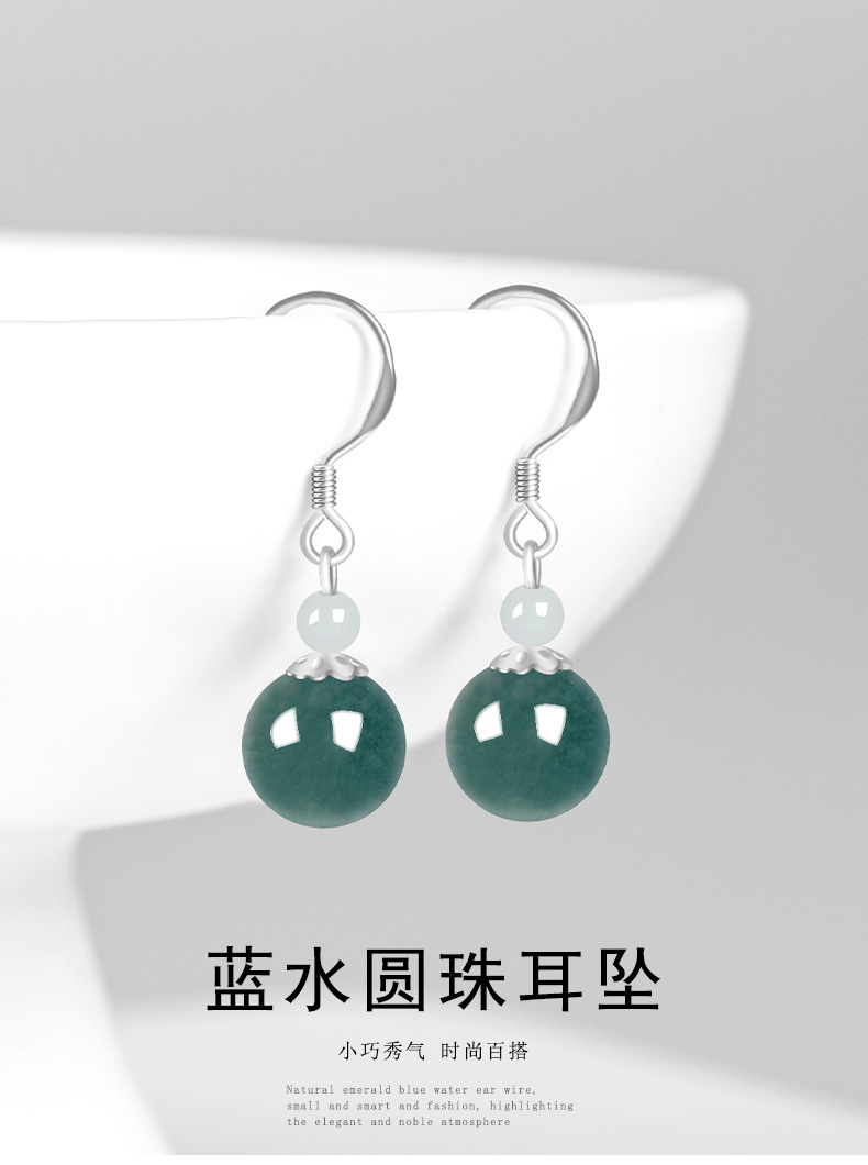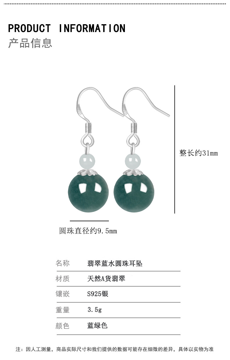 商品名称:马传玉天然蓝水冰透翡翠圆珠耳坠MCY117
