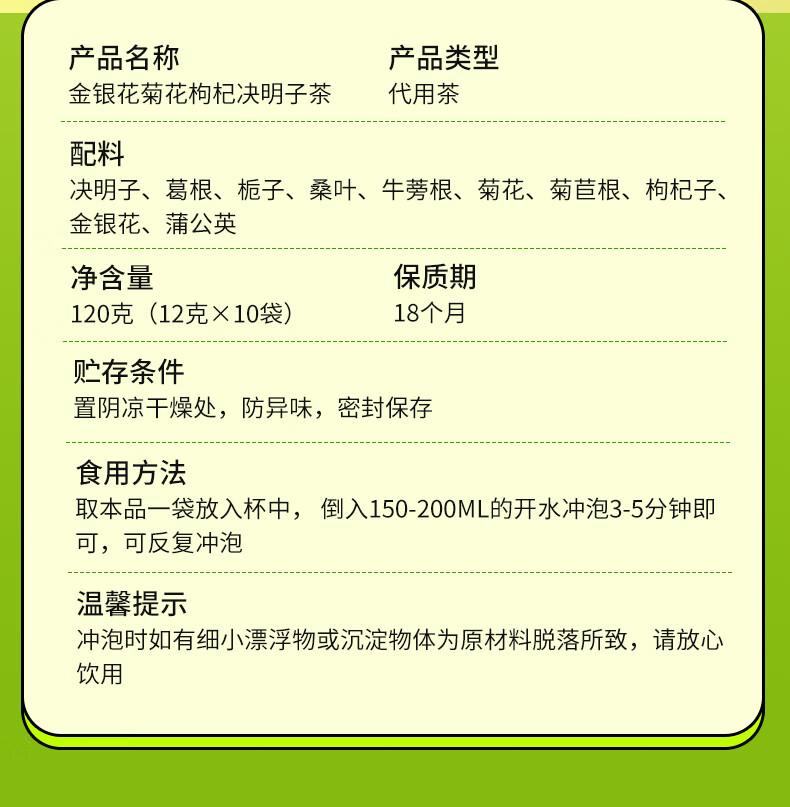 商品名称:北京同仁堂金银花菊花枸杞决明子茶120g