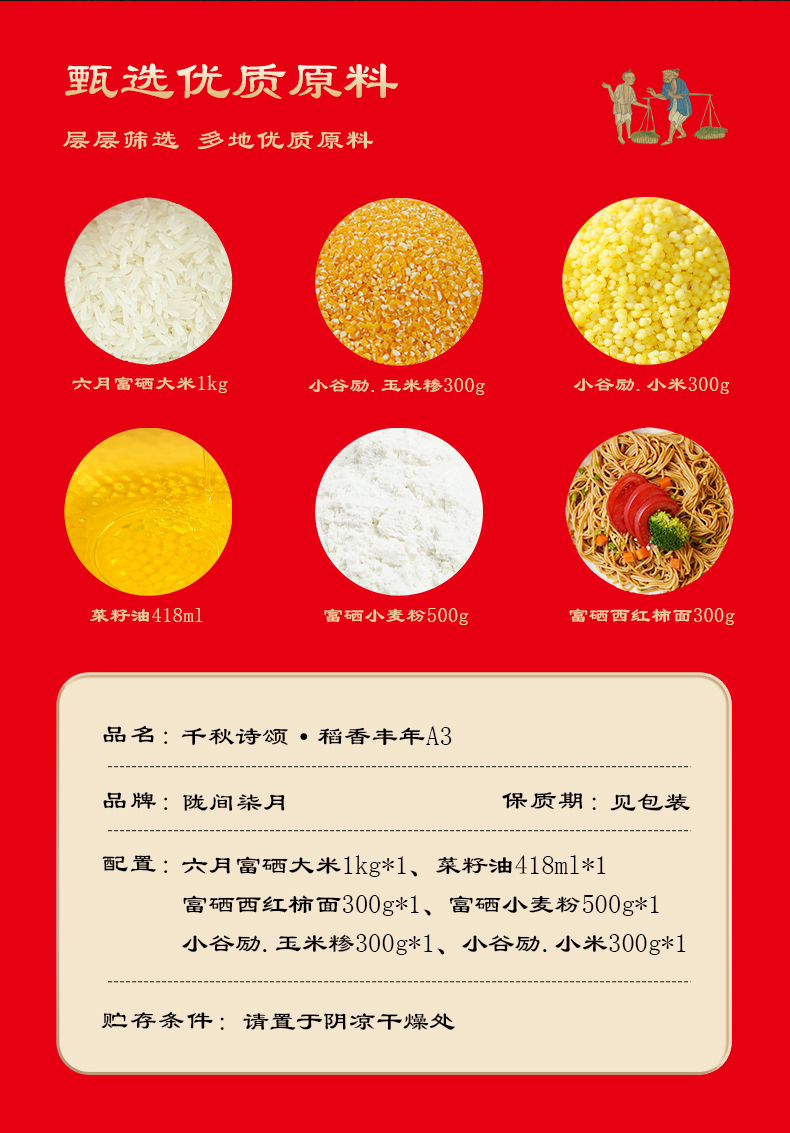 商品名称:陇间柒月千秋诗颂稻香丰年A3粮油礼盒2400g+418ml
