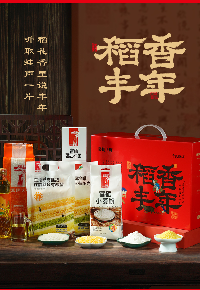 陇间柒月千秋诗颂稻香丰年A3粮油礼盒2400g+418ml