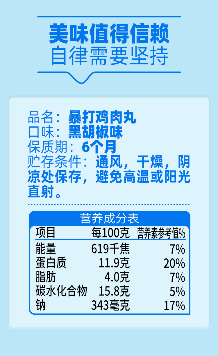 商品名称:暴肌独角兽暴打鸡肉丸三口味组合装原味100g+黑胡椒味100g+香辣味100g