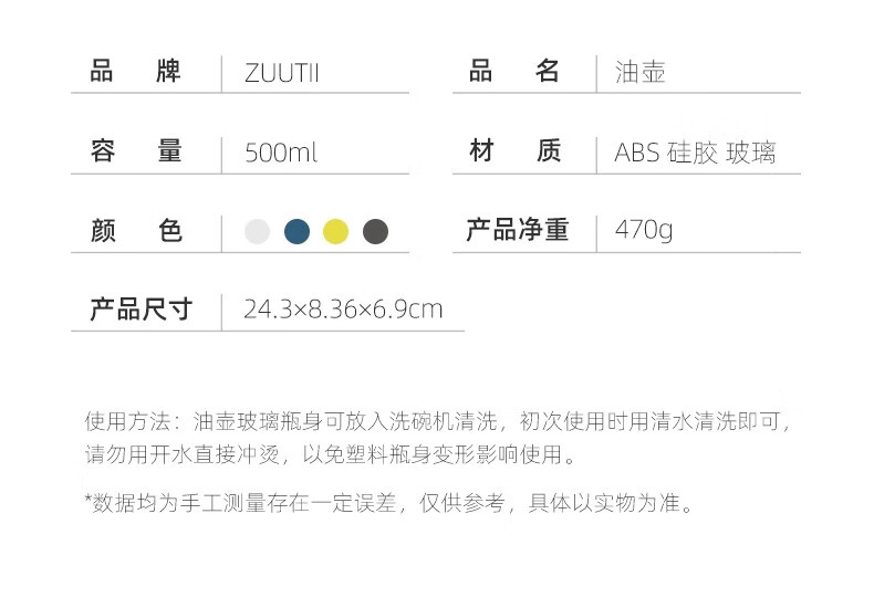 商品名称:zuutii 500毫升玻璃油瓶