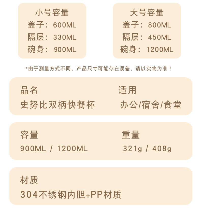 商品名称:SNOOPY/史努比双柄快餐杯HJS-8305