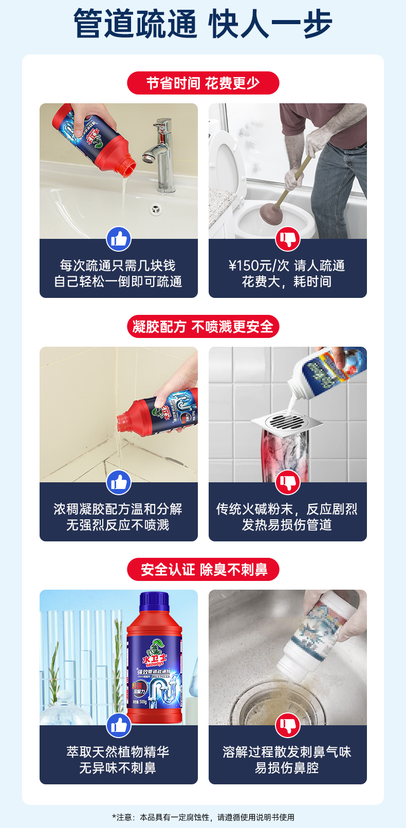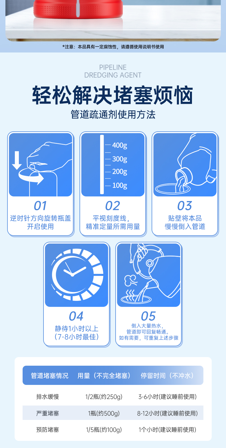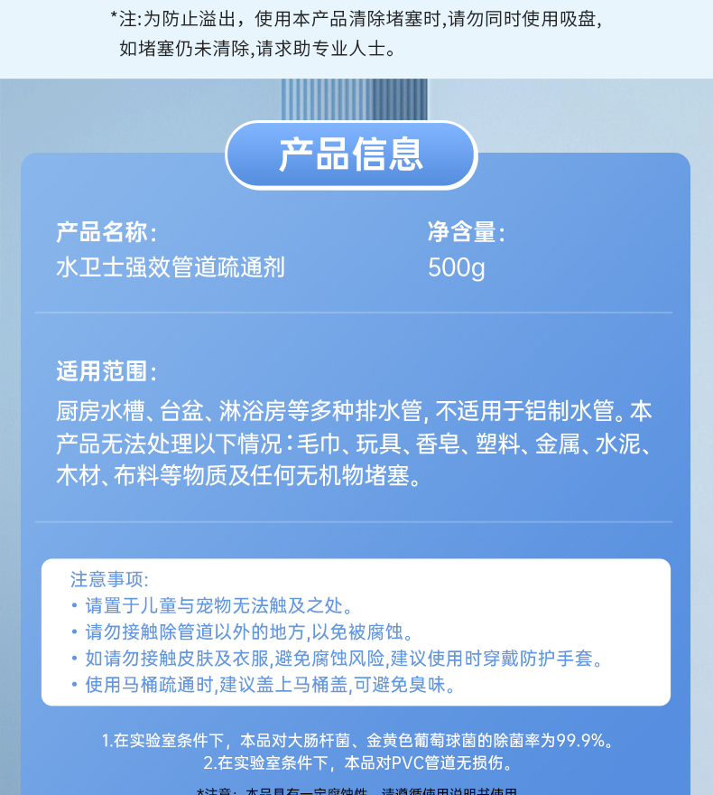 商品名称:水卫仕强效管道疏通剂500g