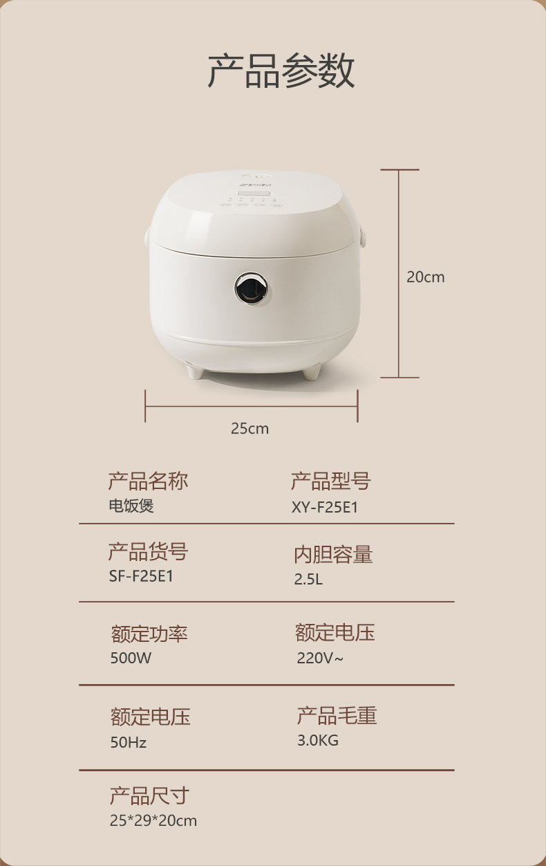 商品名称:SANSUI/山水2.5升电饭煲SF-F25E1