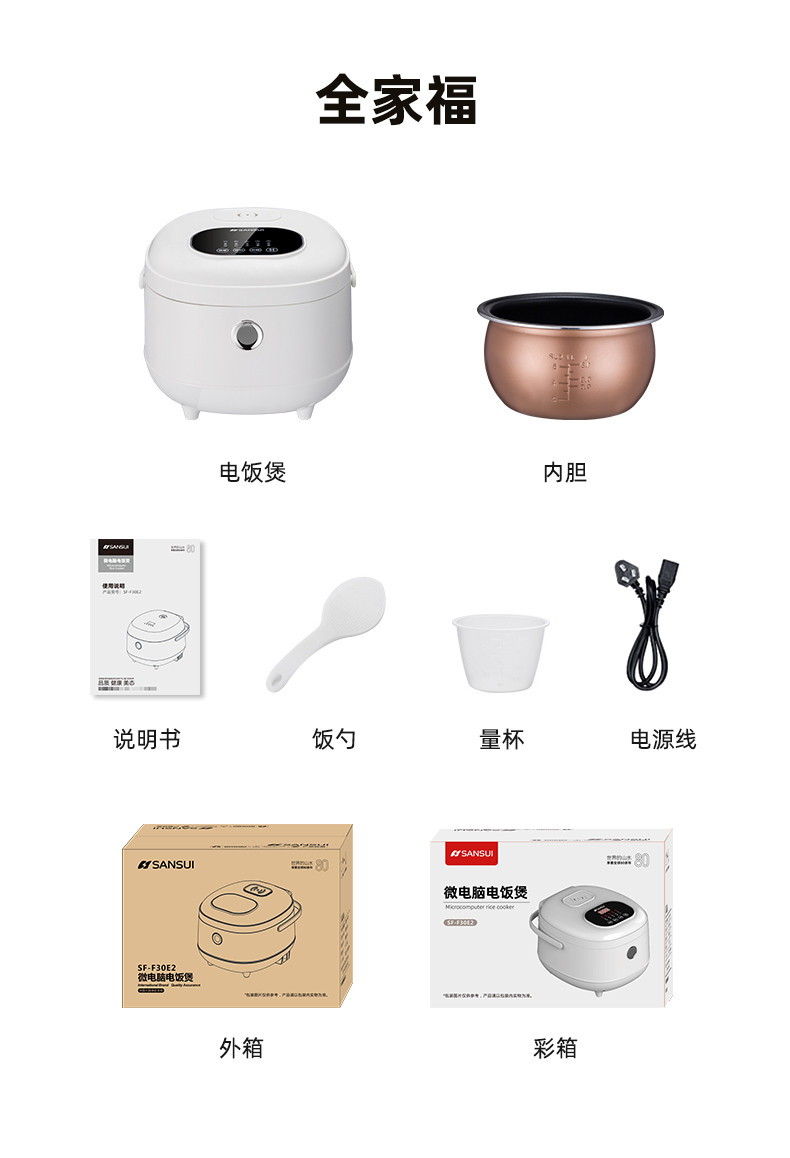 商品名称:SANSUI/山水3升电饭煲SF-F30E2