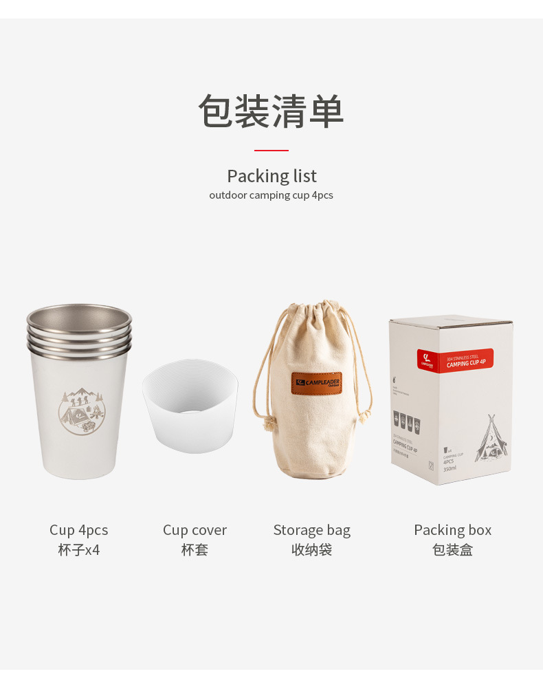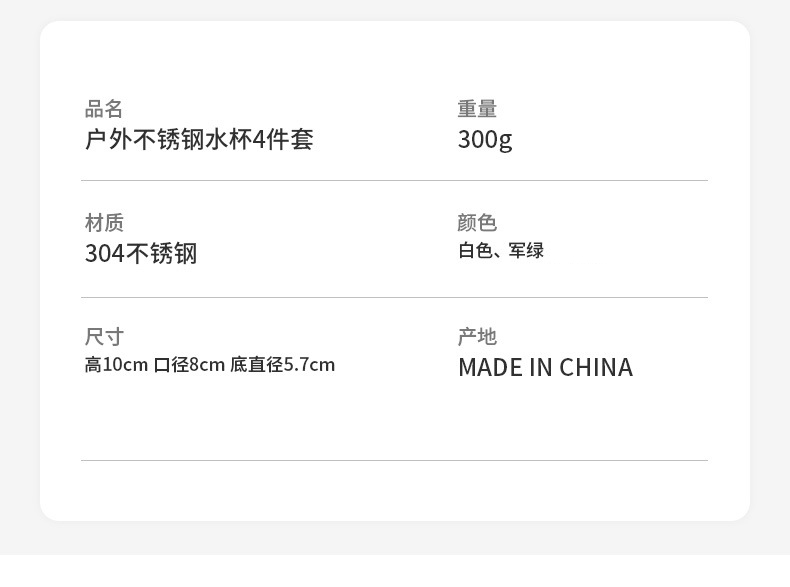 商品名称:FTLY/飞图乐350毫升户外不锈钢水杯四件套