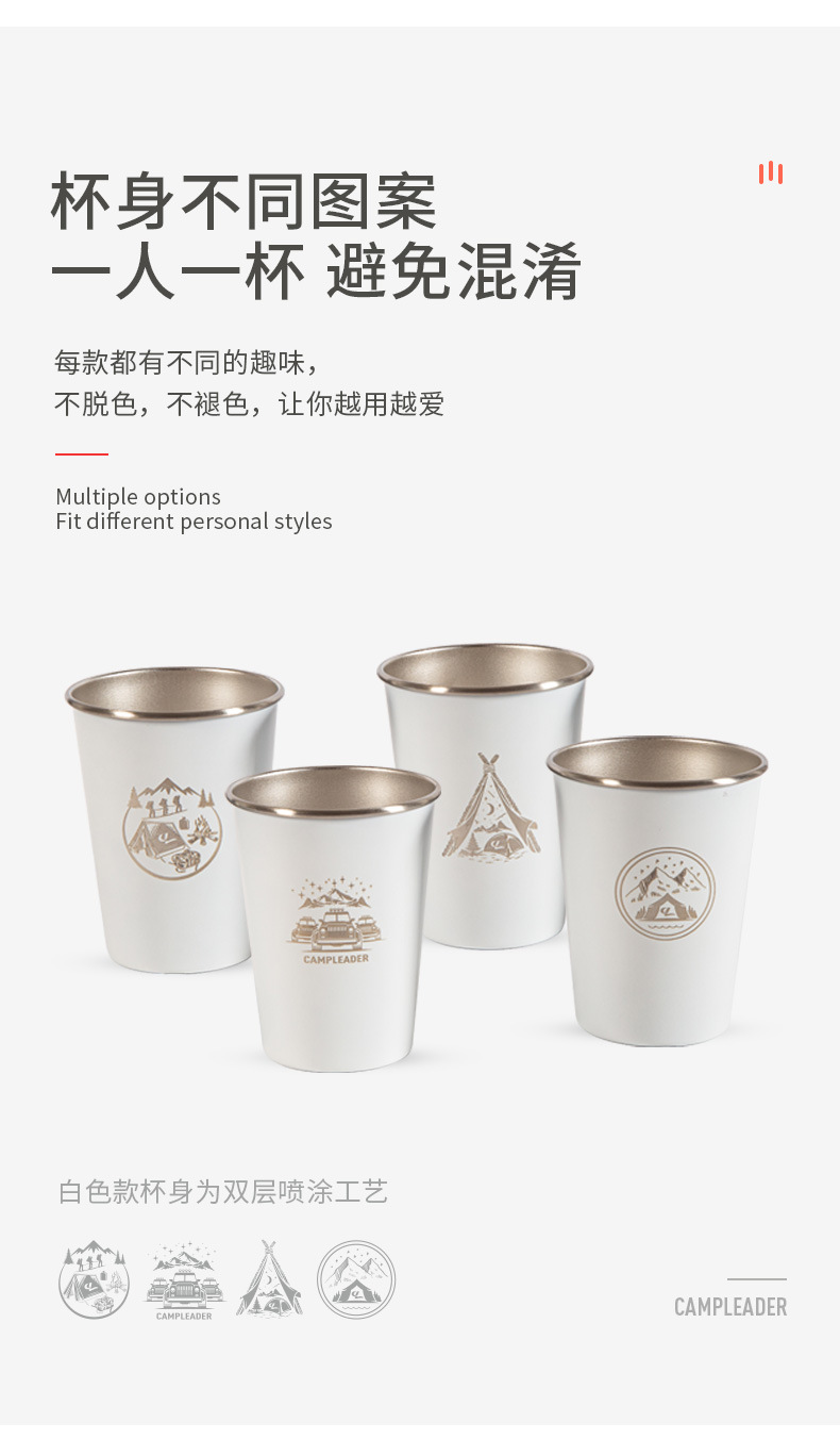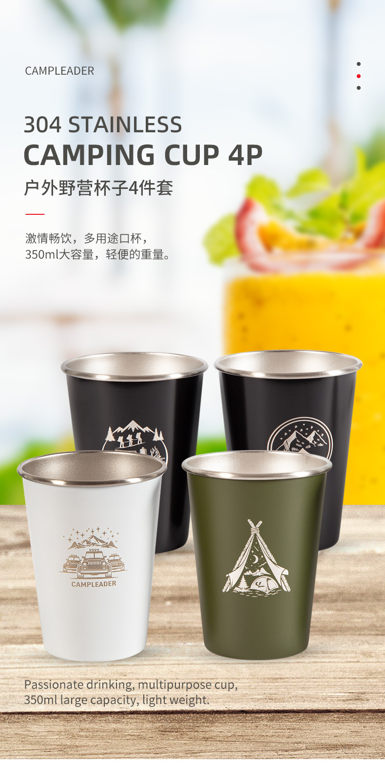 FTLY/飞图乐350毫升户外不锈钢水杯四件套