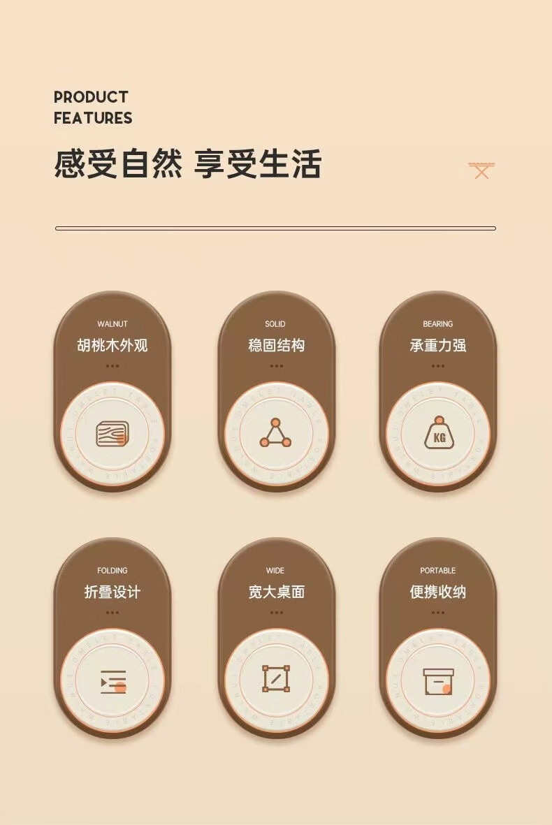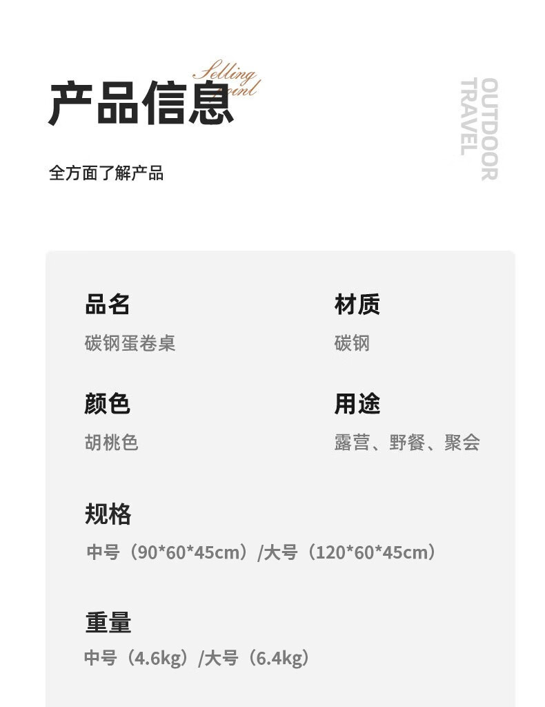 商品名称:FTLY/飞图乐便携折叠碳钢蛋卷桌-胡桃色
