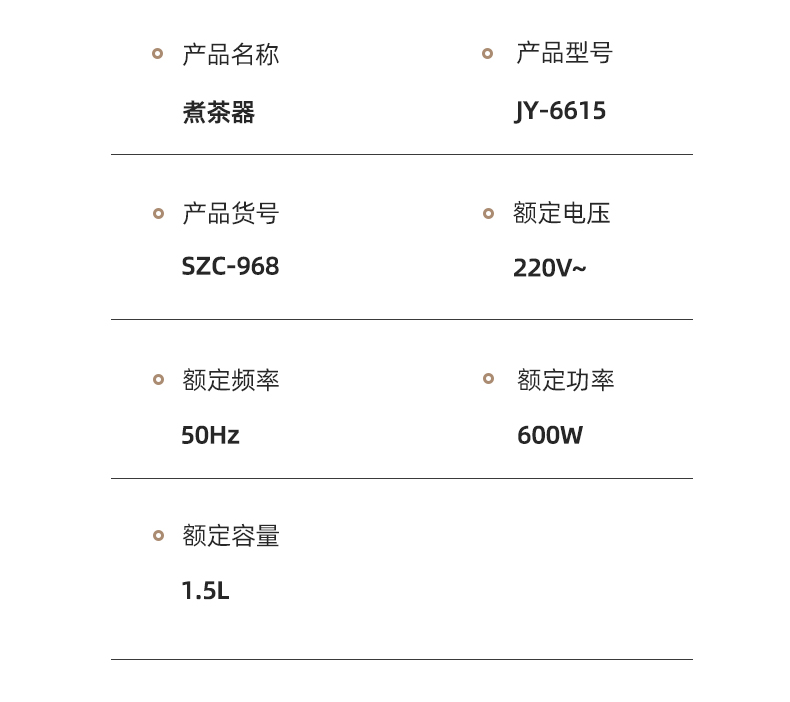 商品名称:SANSUI/山水1.5升煮茶器SZC-968