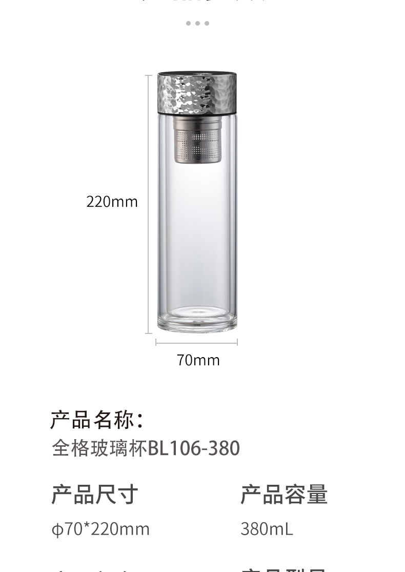 商品名称:Quange/全格380毫升磁弹泡茶玻璃杯SJ021301