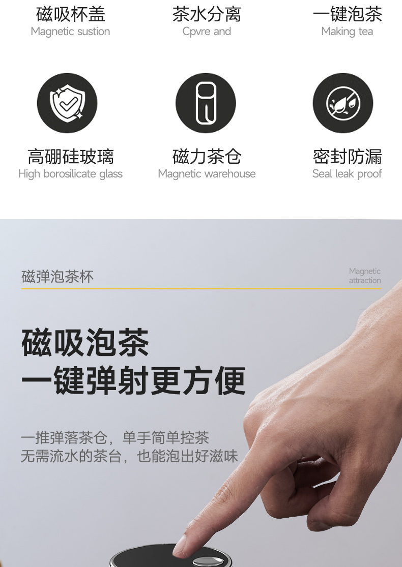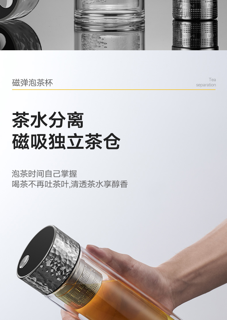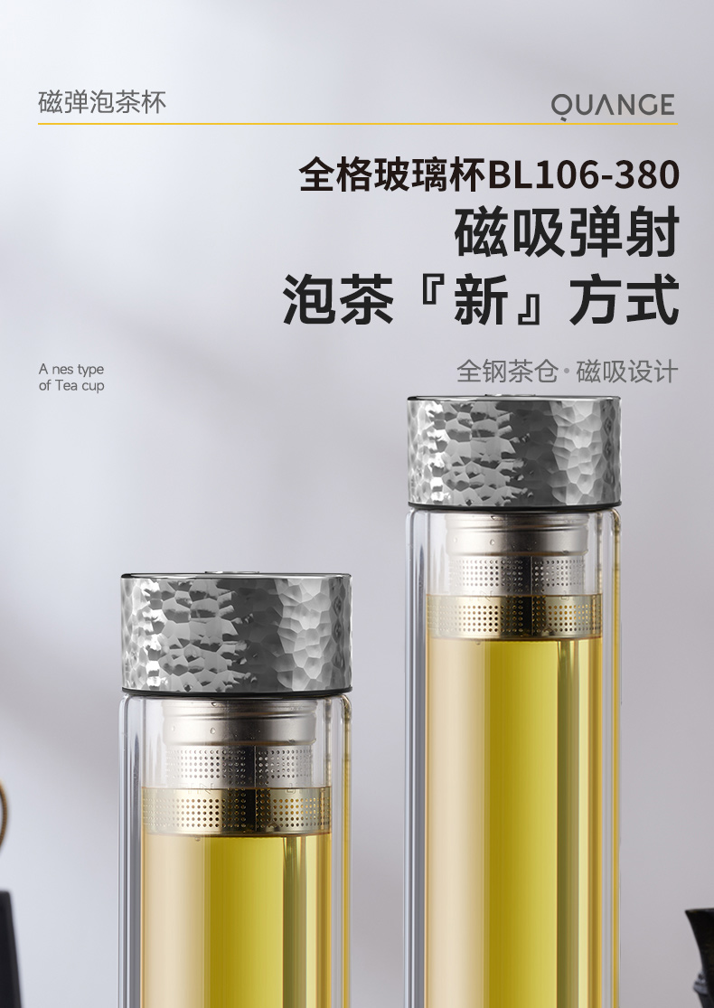 Quange/全格380毫升磁弹泡茶玻璃杯SJ021301