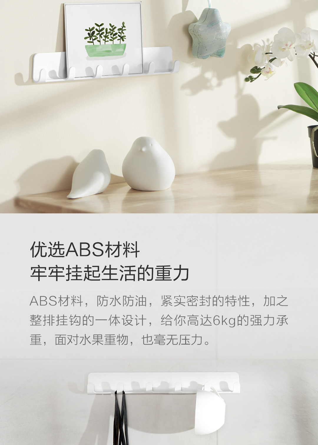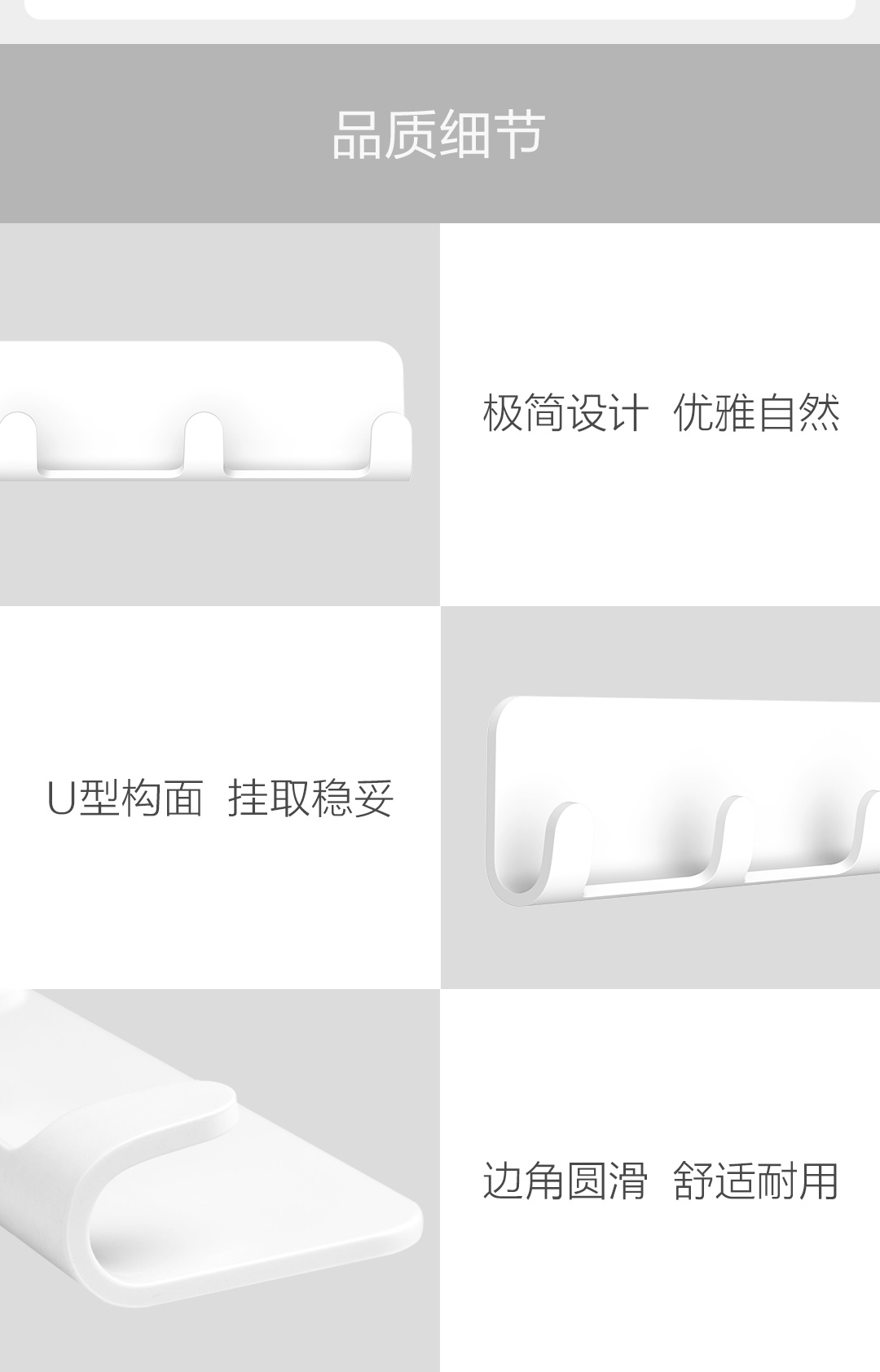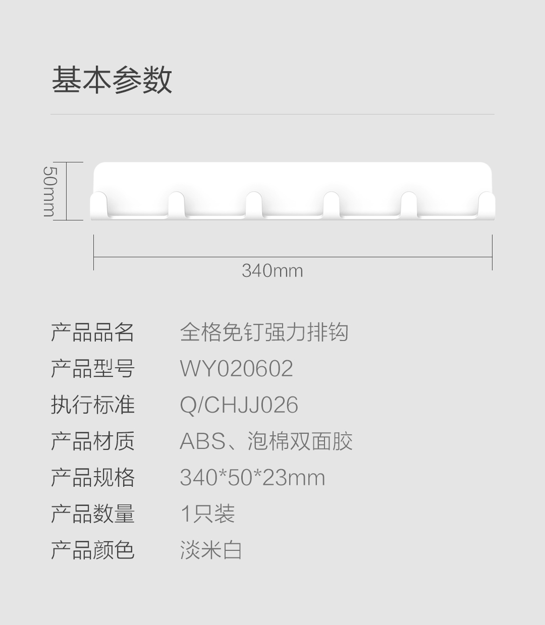 商品名称:Quange/全格免钉强力排钩-淡米白WY020602