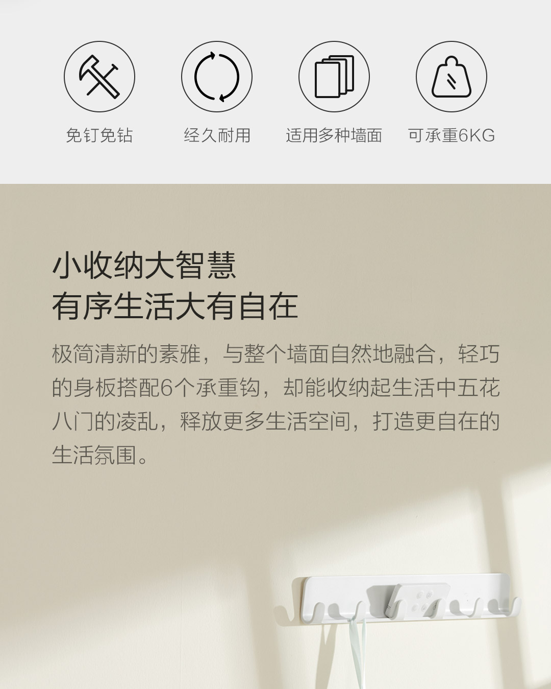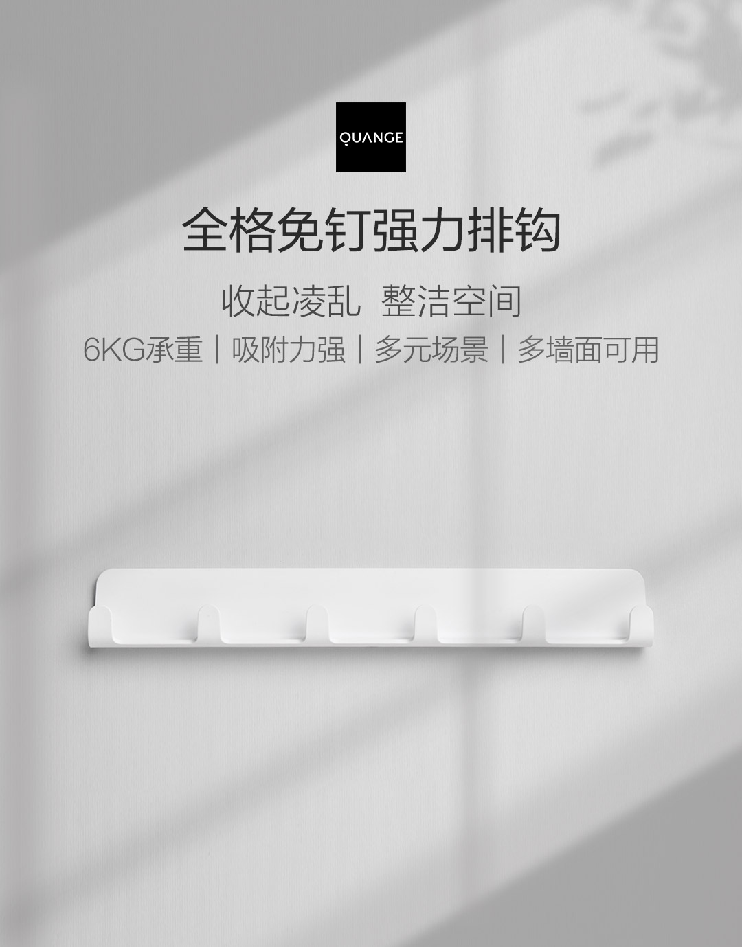 Quange/全格免钉强力排钩-淡米白WY020602
