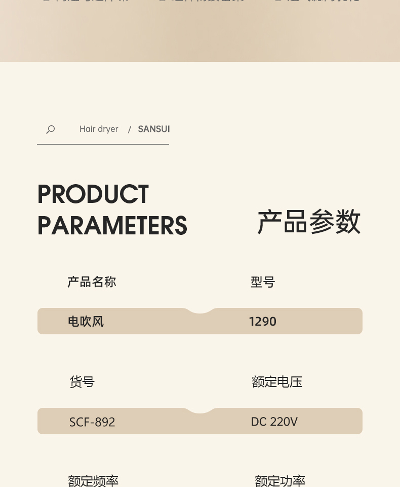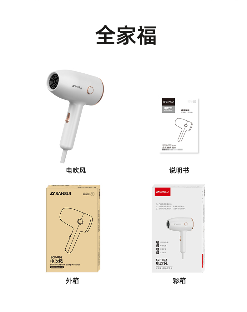 商品名称:SANSUI/山水电吹风SCF-892