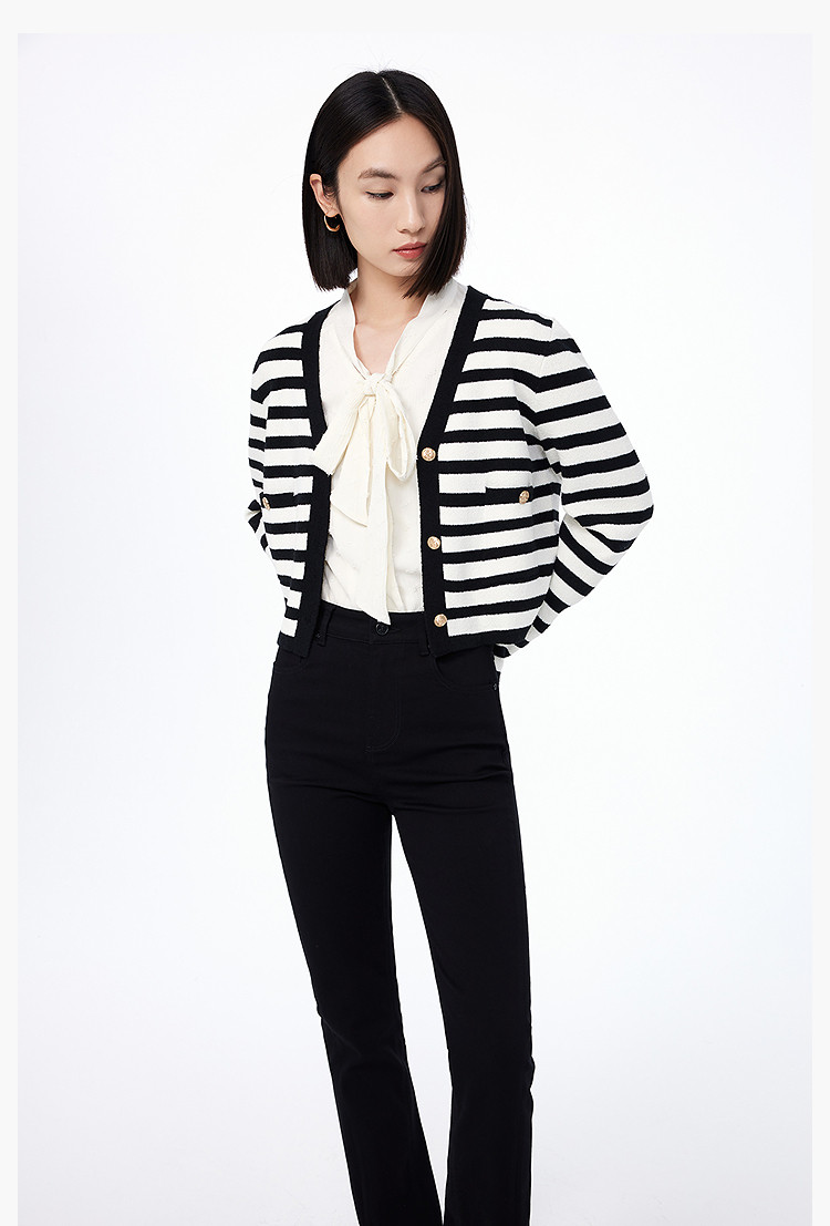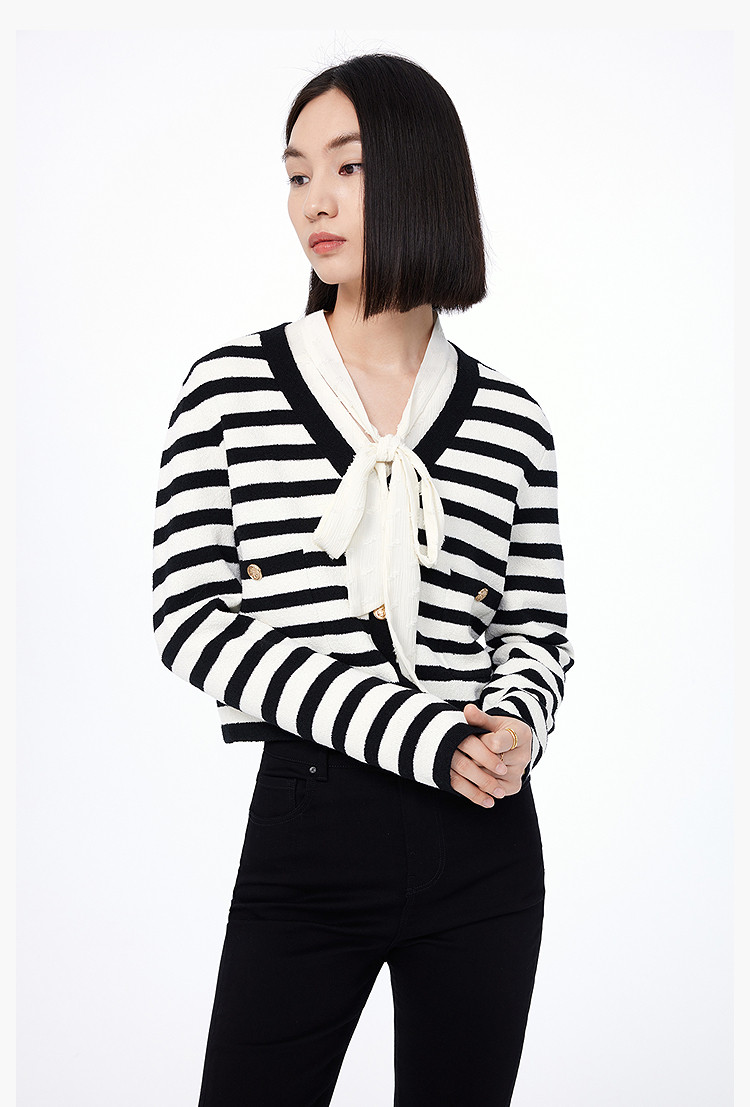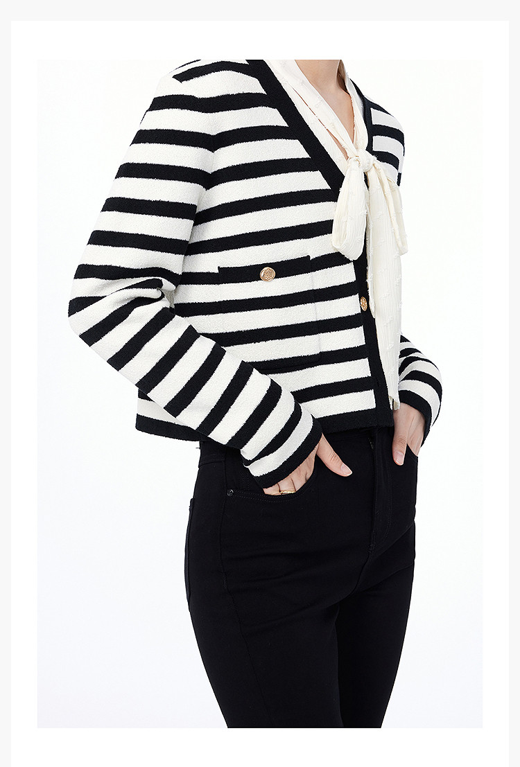 商品名称:【小香风】外套女春季通勤复古优雅V领针织开衫短外套 000795