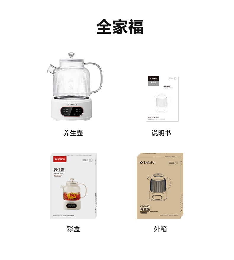 商品名称:SANSUI/山水1升养生壶KT-1840