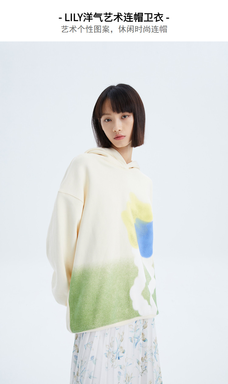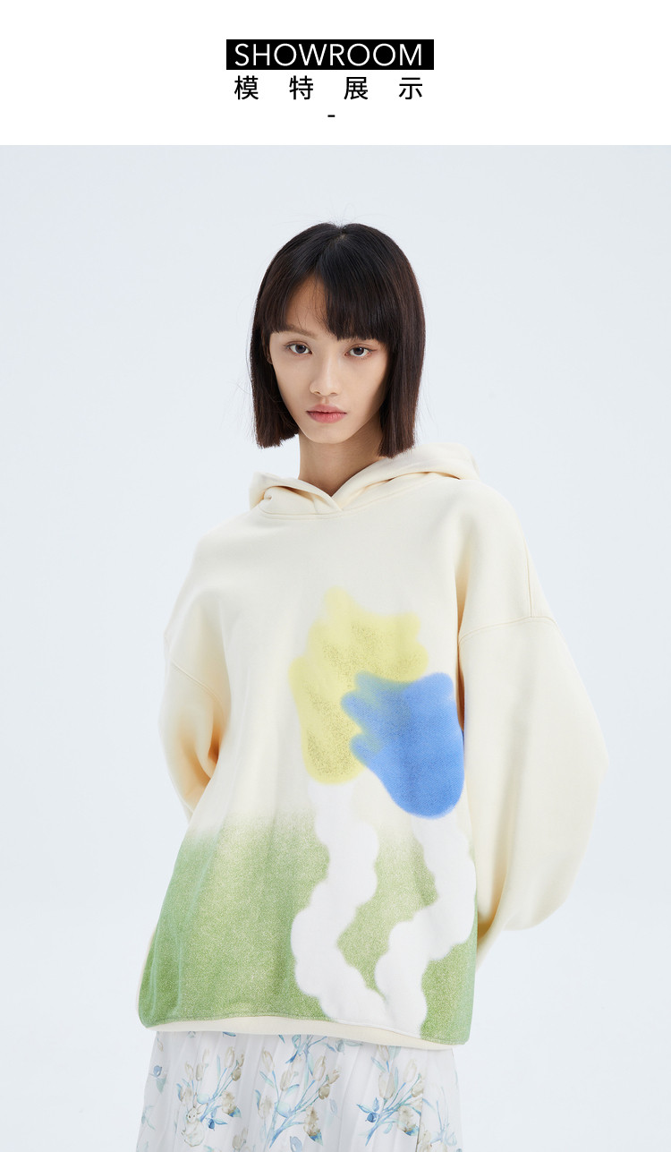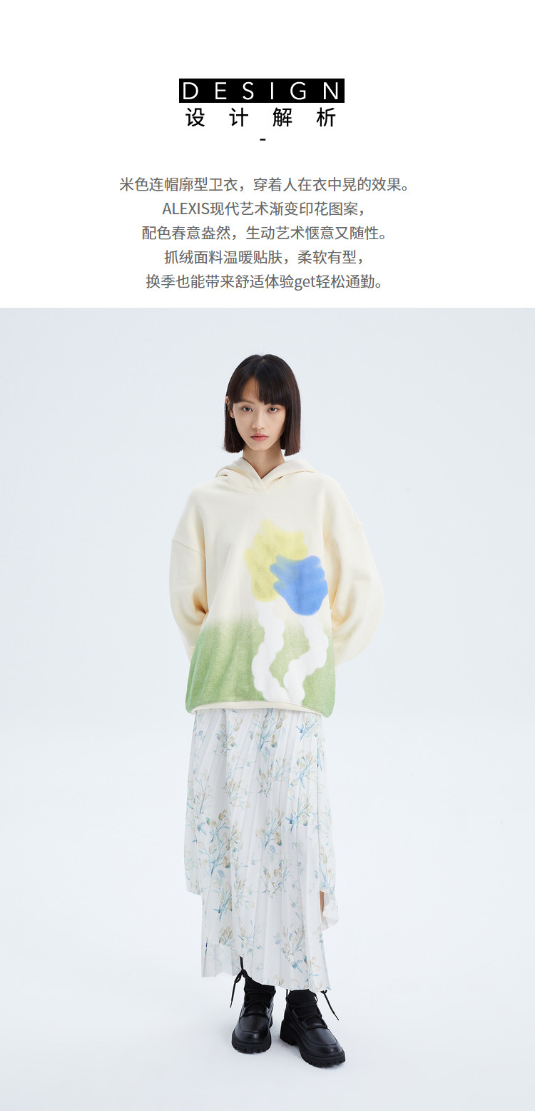 商品名称:【商场同款】春季款洋气个性艺术休闲宽松连帽卫衣 074139