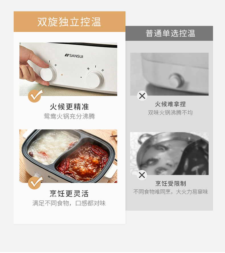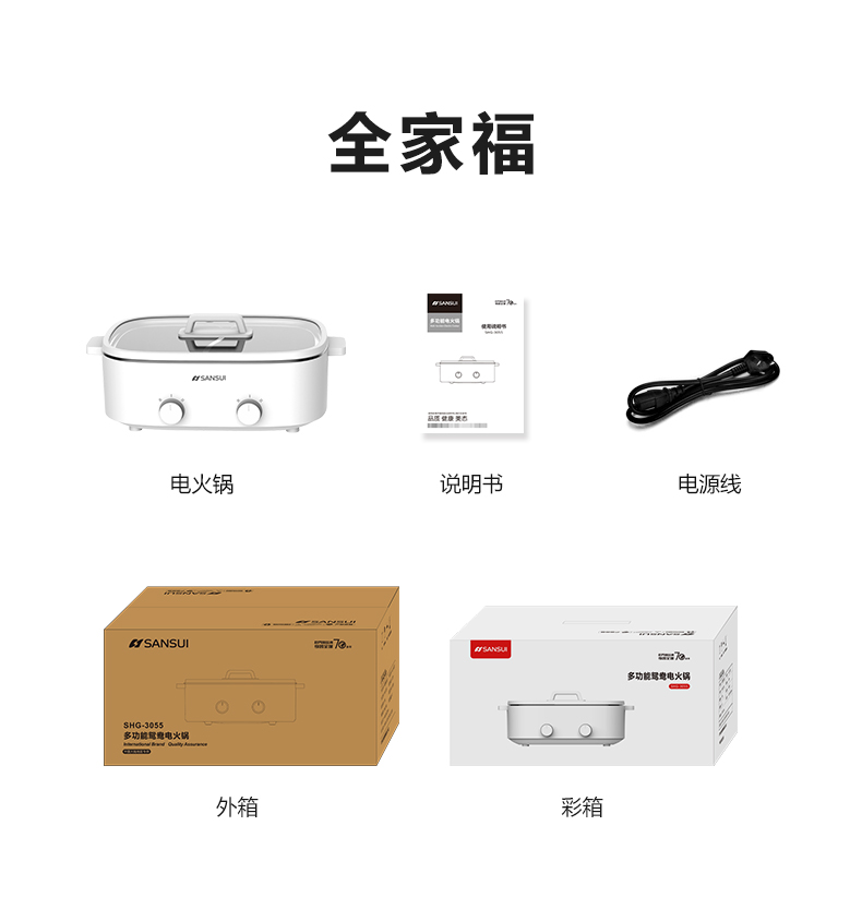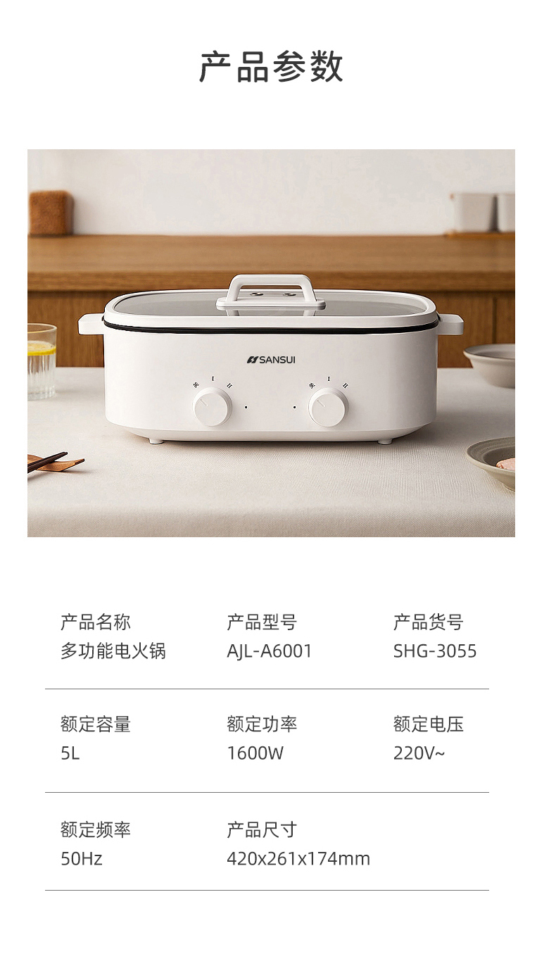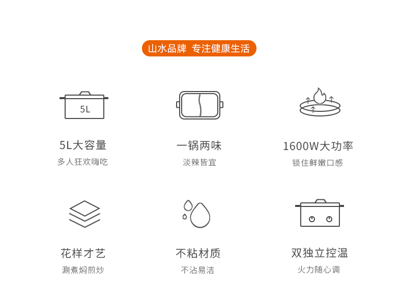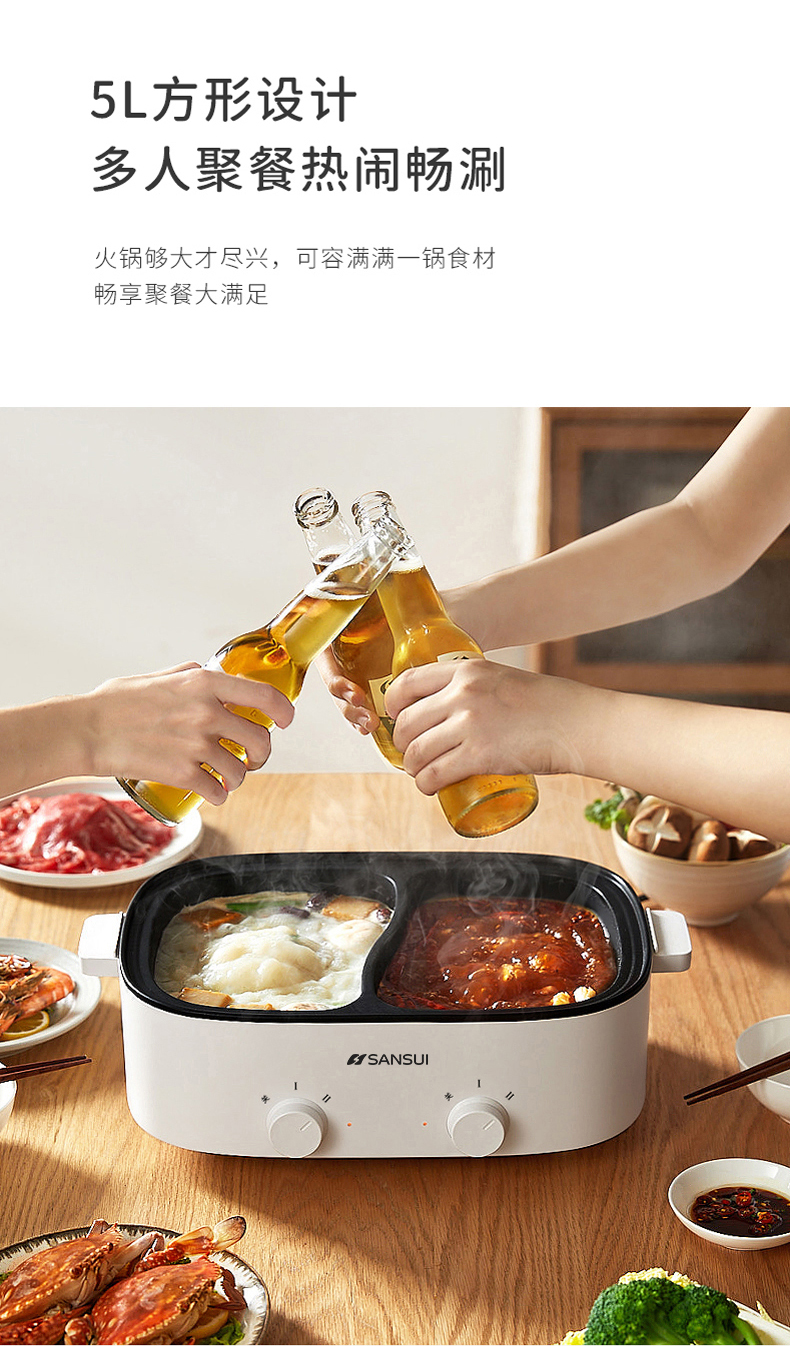 商品名称:SANSUI/山水5升鸳鸯电火锅SHG-3055