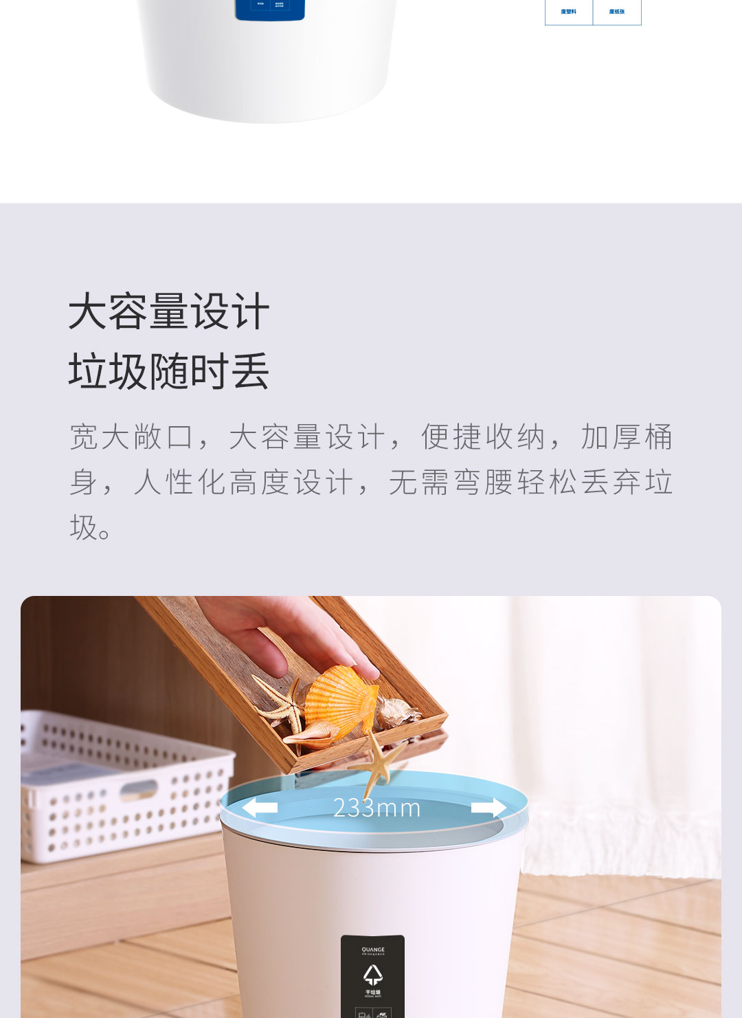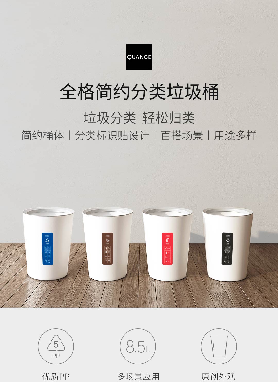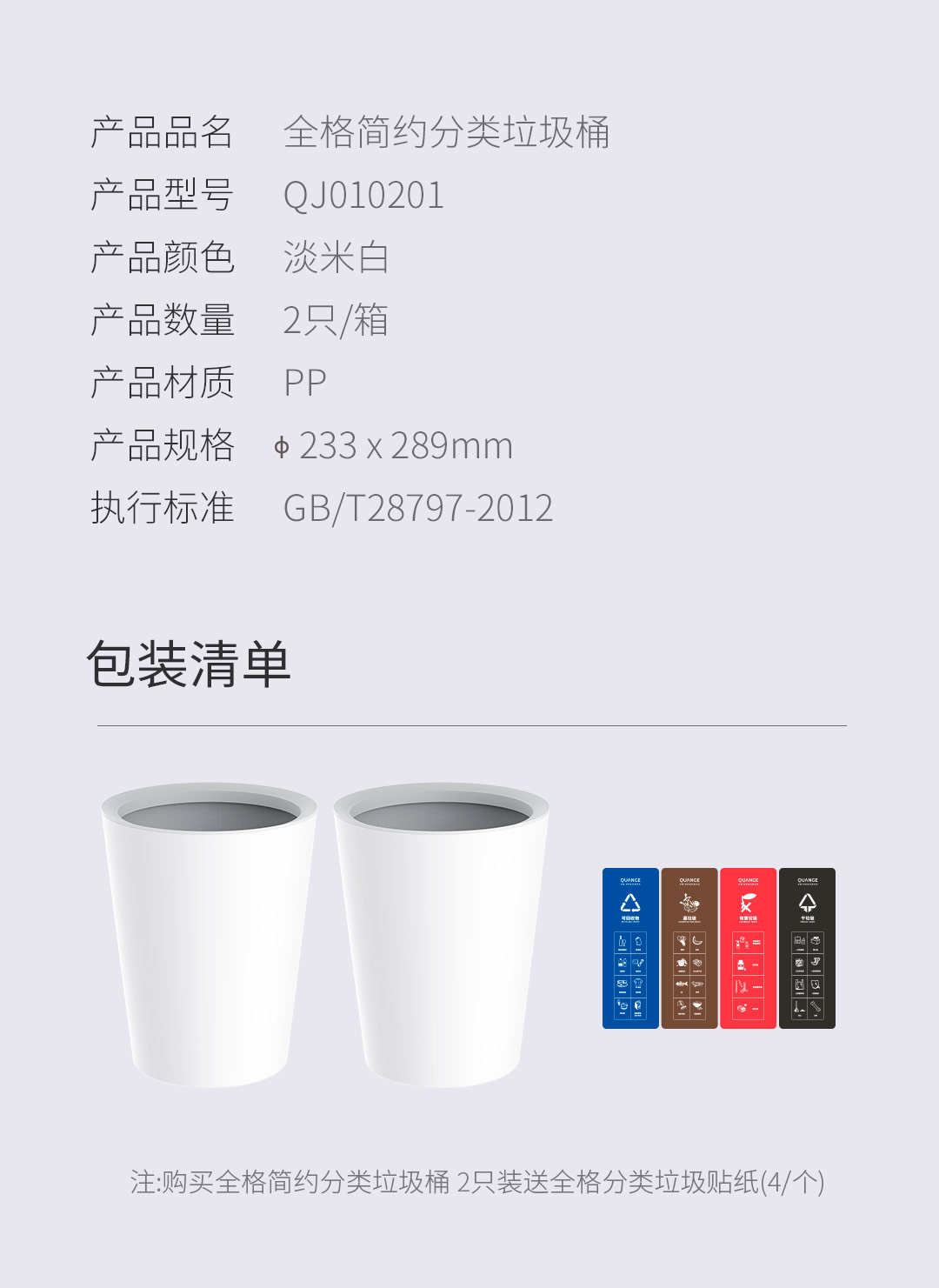 商品名称:Quange/全格简约收纳垃圾桶2只装