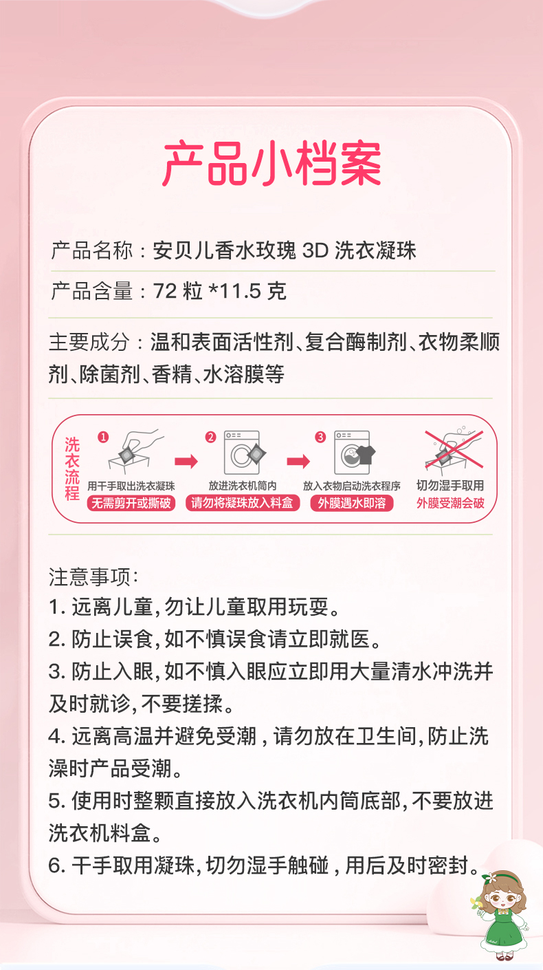 商品名称:安贝儿香水玫瑰3D洗衣凝珠11.5g*72粒