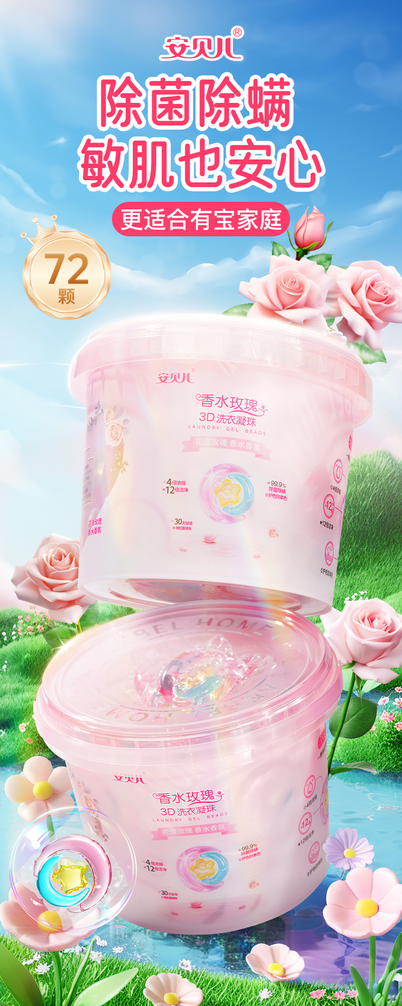 安贝儿香水玫瑰3D洗衣凝珠11.5g*72粒