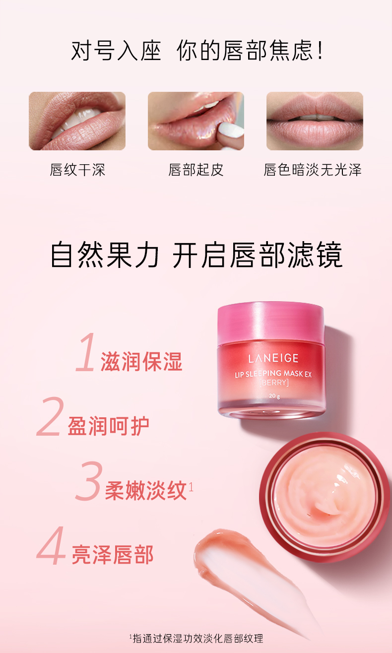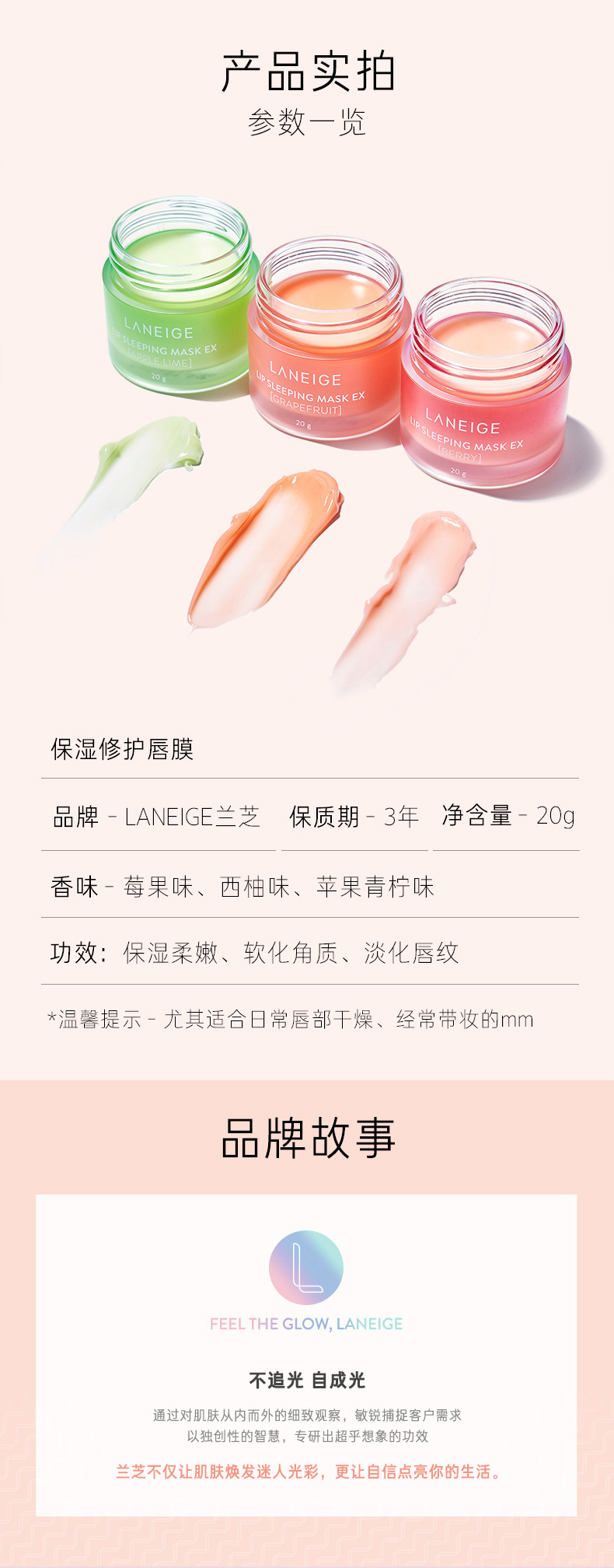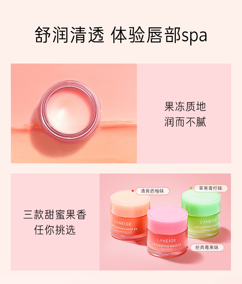 商品名称:Laneige/兰芝 夜间修护唇膜 20g 果冻唇膜