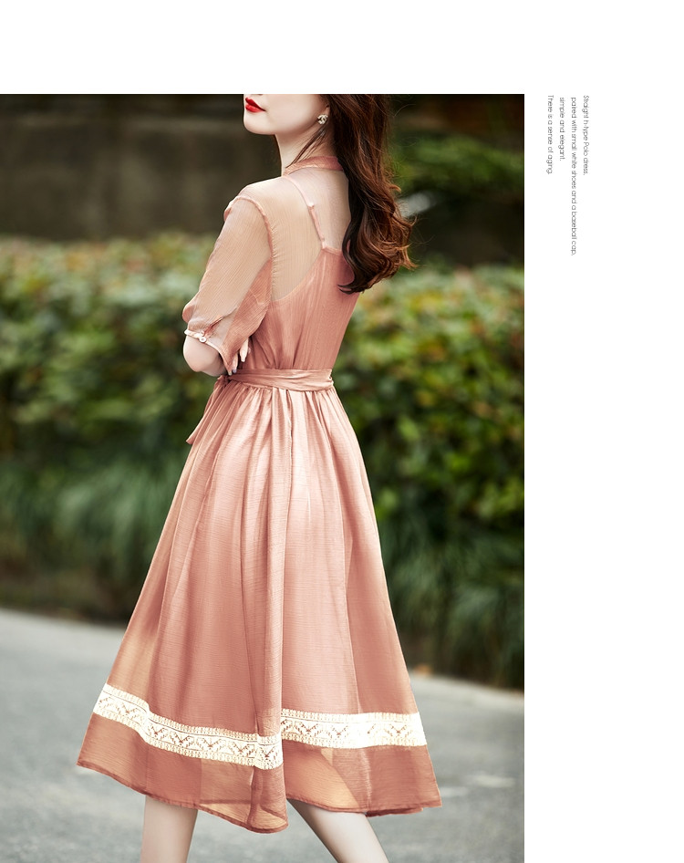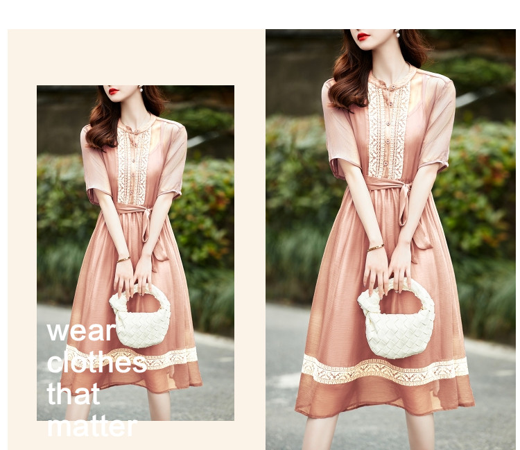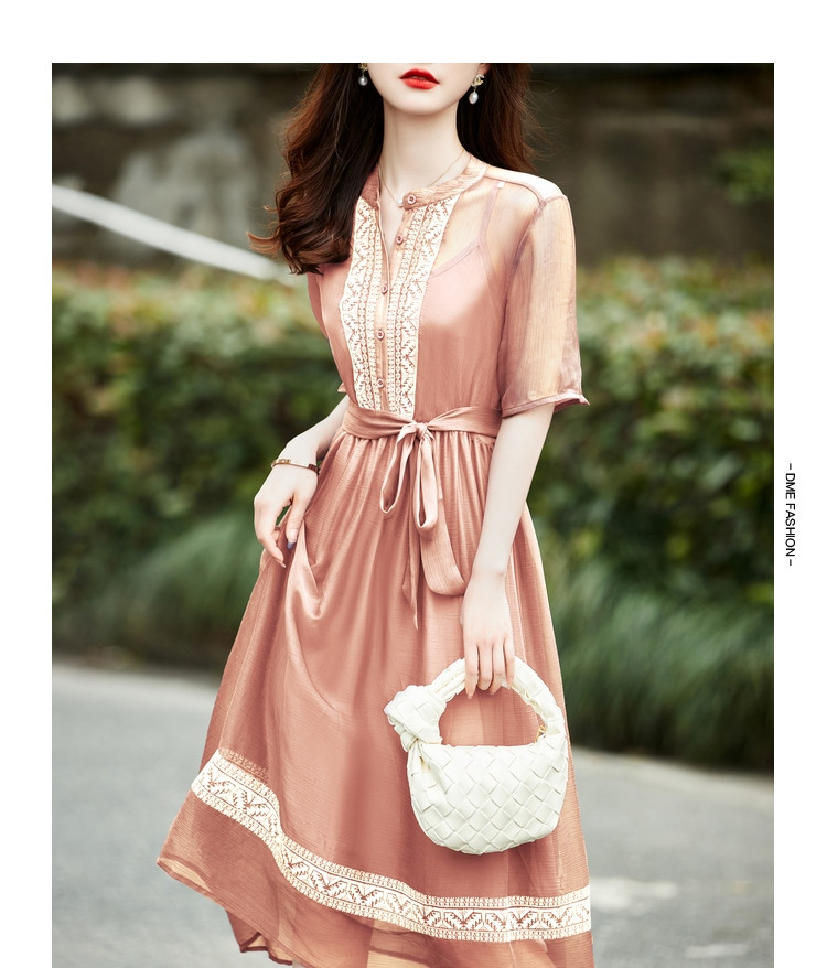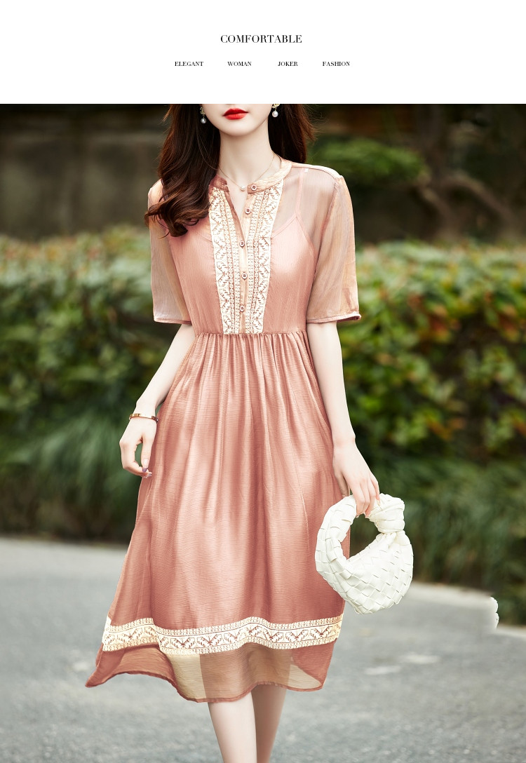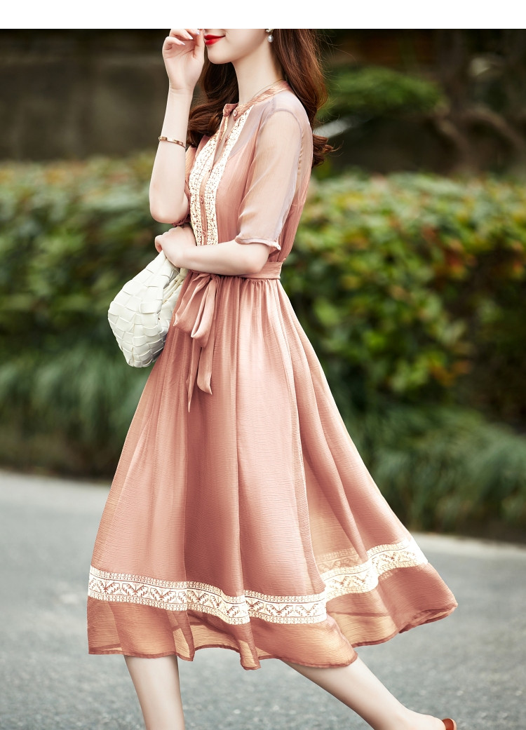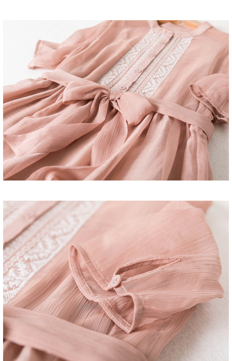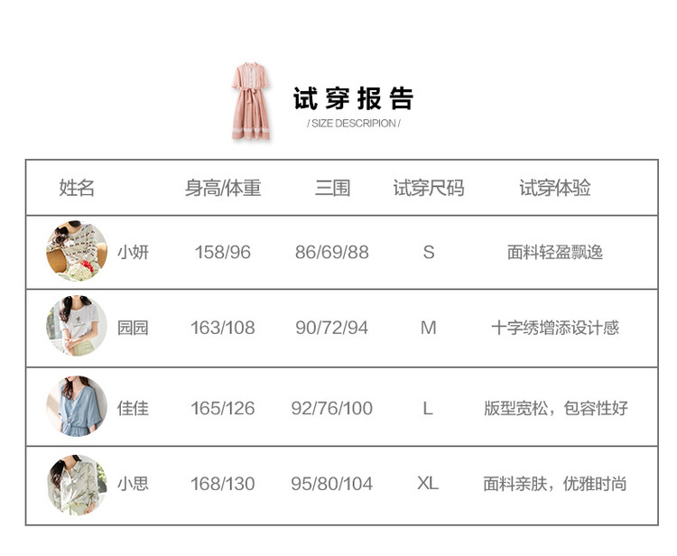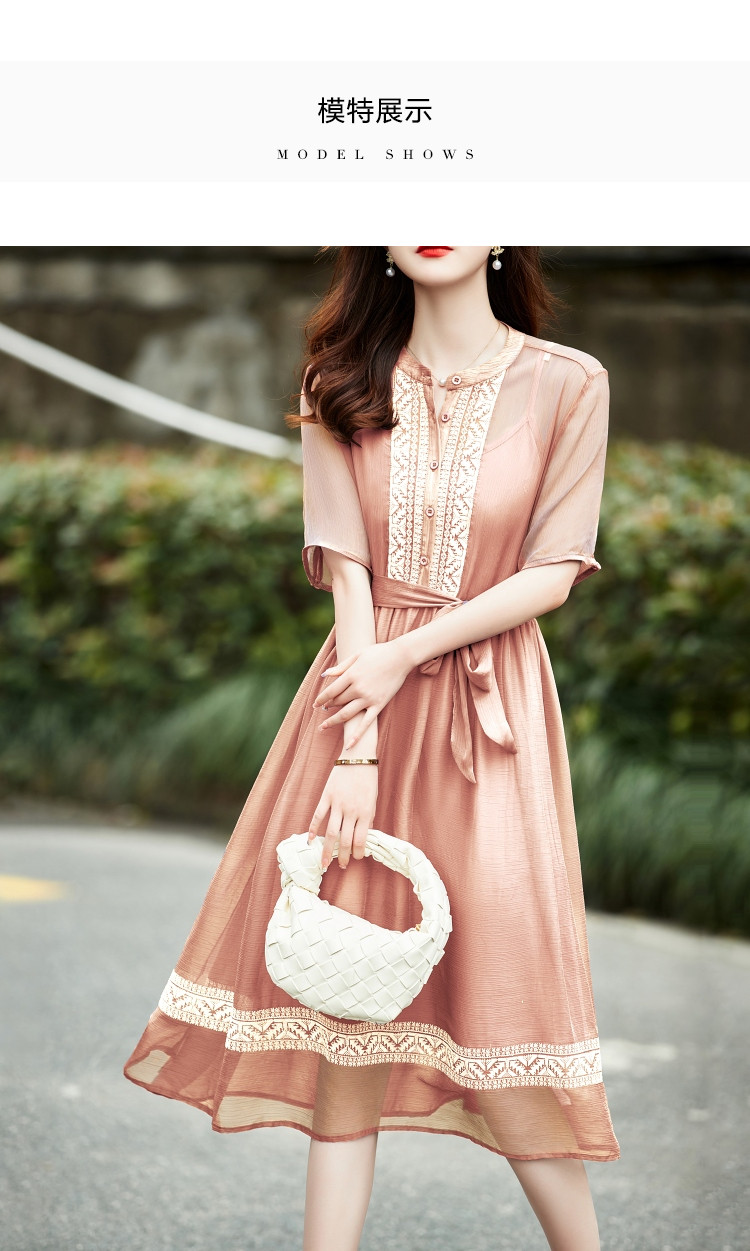 商品名称:【十字刺绣】夏季通勤简约雪纺绉宽松A型连衣裙女 840065