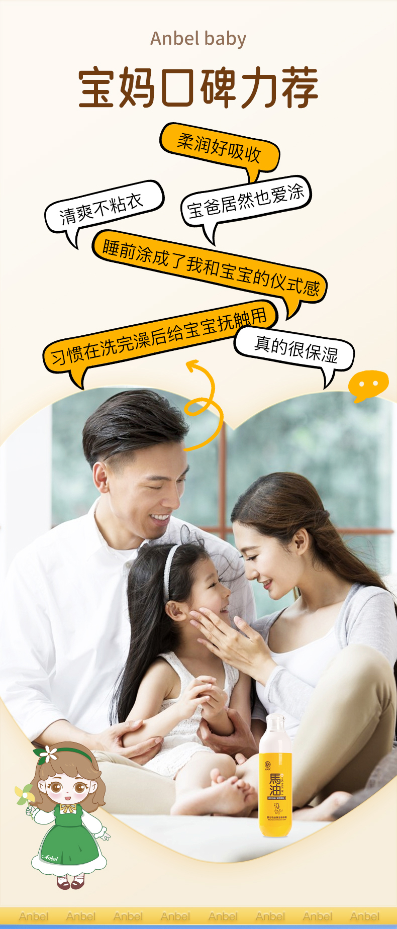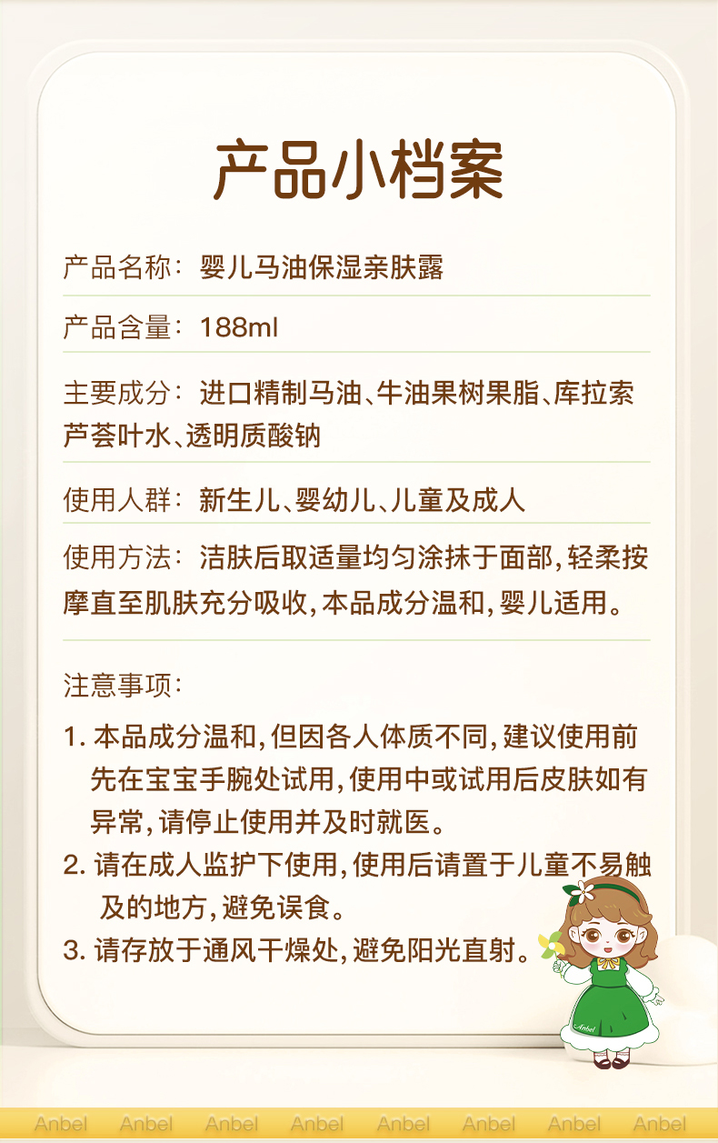 商品名称:安贝儿婴儿马油保湿亲肤露188ml