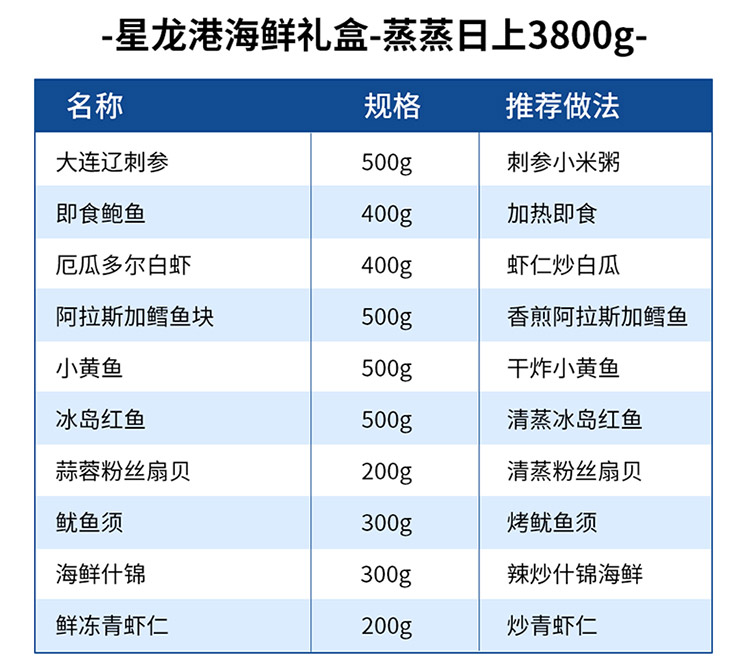 商品名称:【顺丰配送】星龙港蒸蒸日上海鲜礼盒约3800g