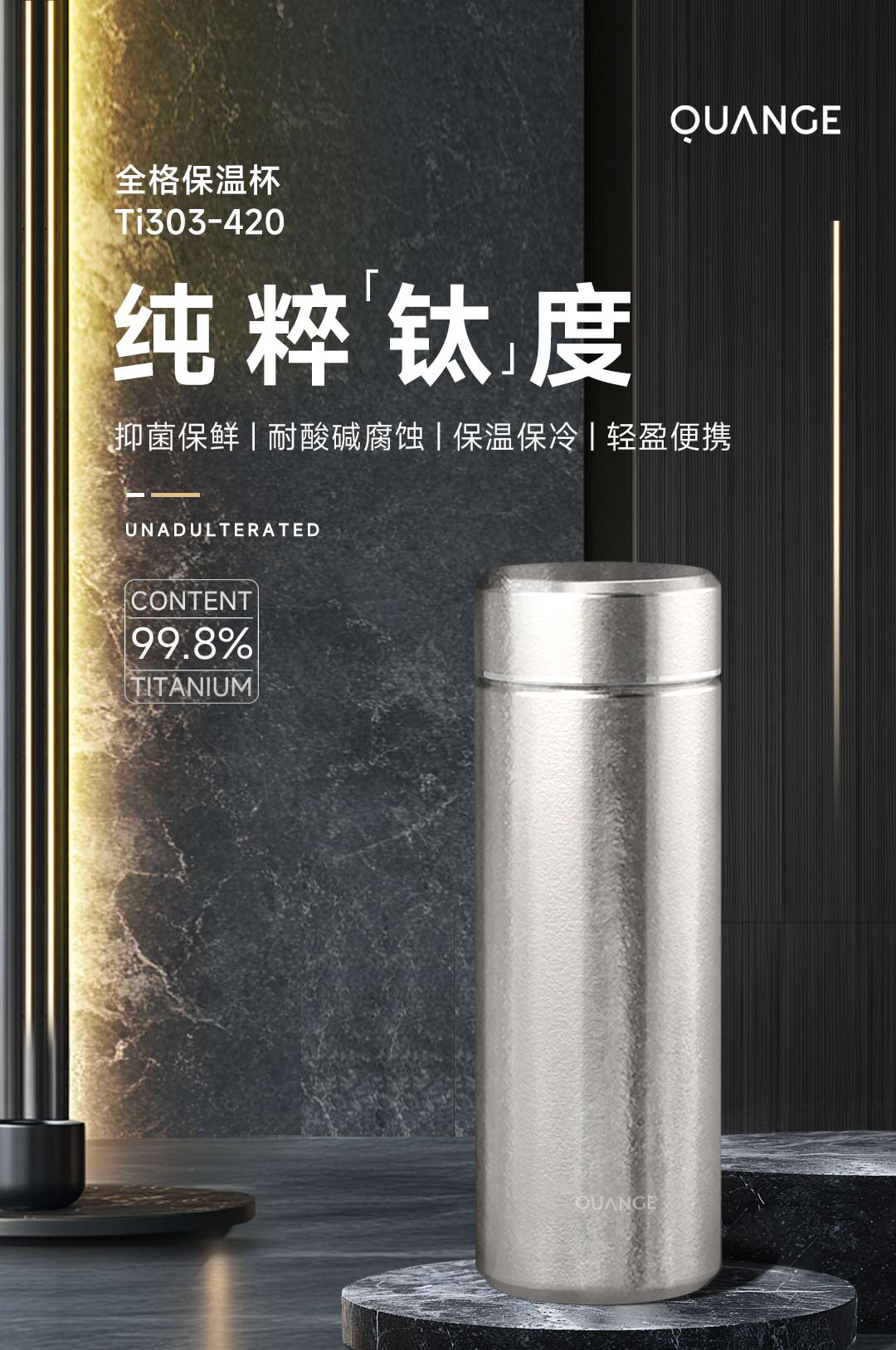 Quange/全格420毫升全格保温杯-晶花钛Ti303-420