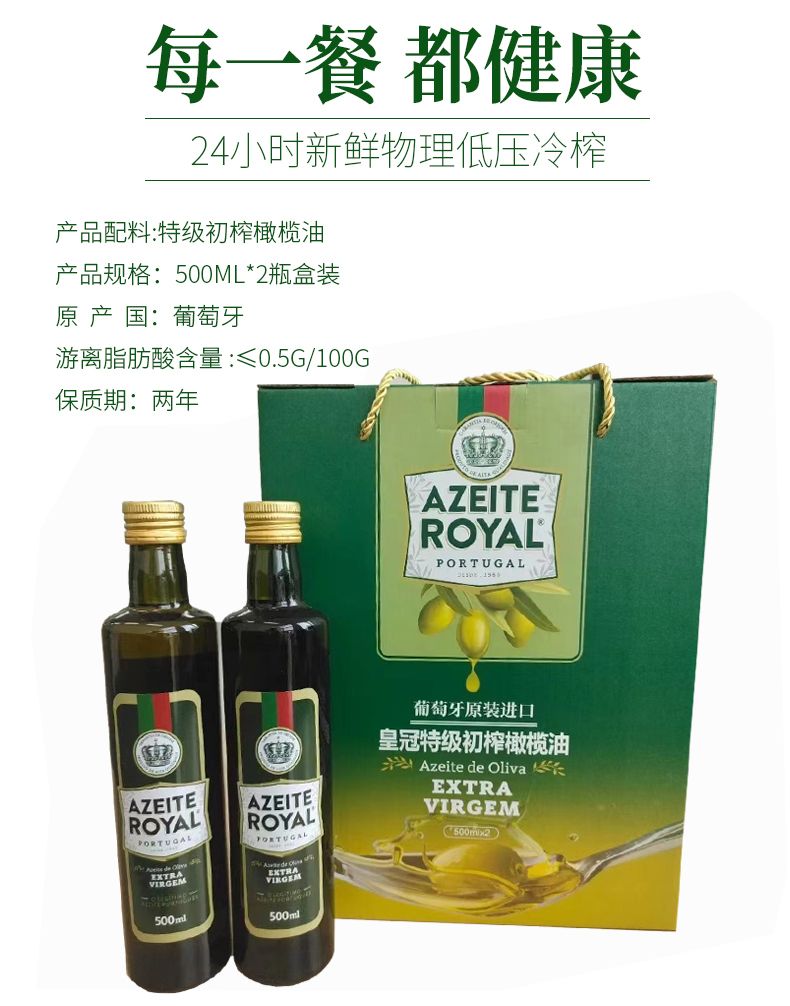 商品名称:AZEITEROYAL 特级初榨橄榄油简装绿盒500ml*2瓶