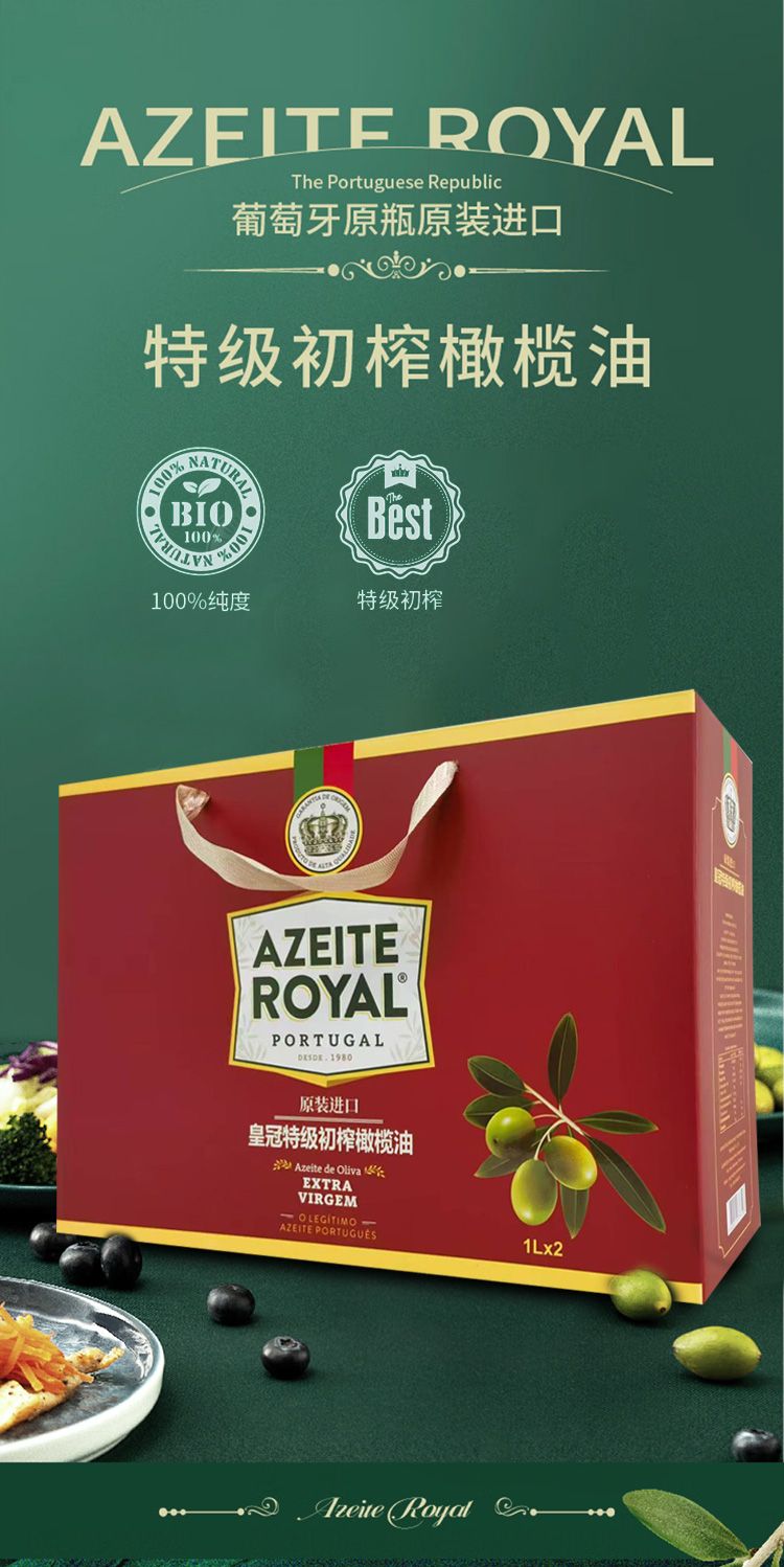 商品名称:AZEITEROYAL 特级初榨橄榄油礼盒1L*2瓶