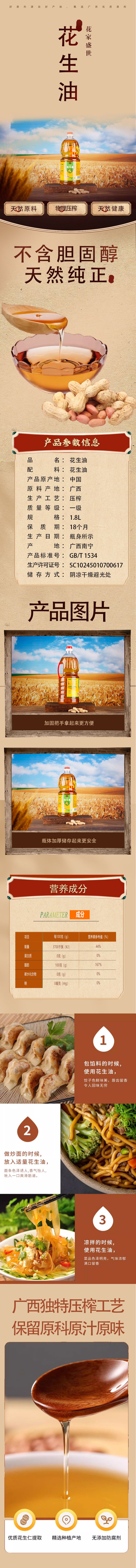 商品名称:花家盛世 一级花生油1.8L优质原料浓香小瓶装