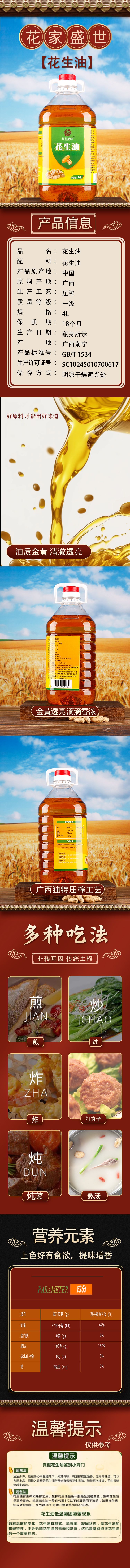 商品名称:花家盛世 浓香花生油4L 优质原料