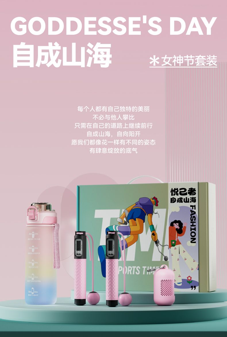 商品名称:长青兔 放肆热爱·运动套装 渐变运动水杯 跳绳 运动毛巾