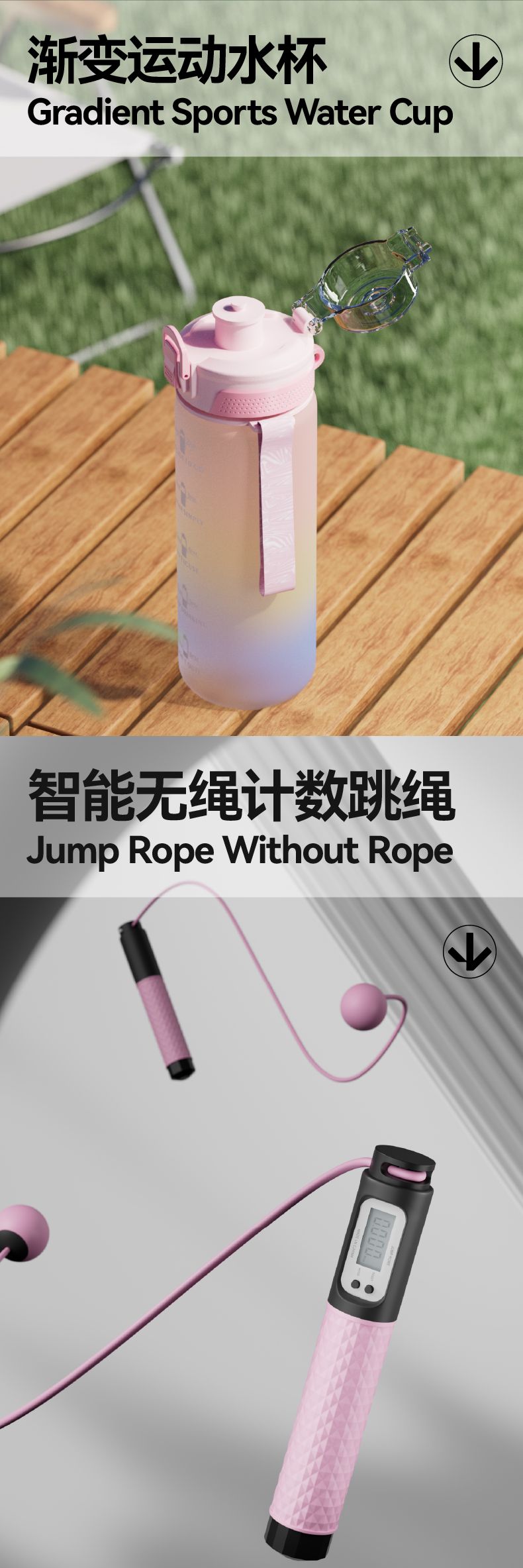 长青兔 放肆热爱·运动套装 渐变运动水杯 跳绳 运动毛巾