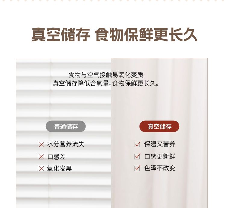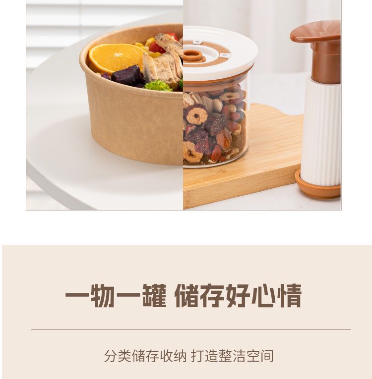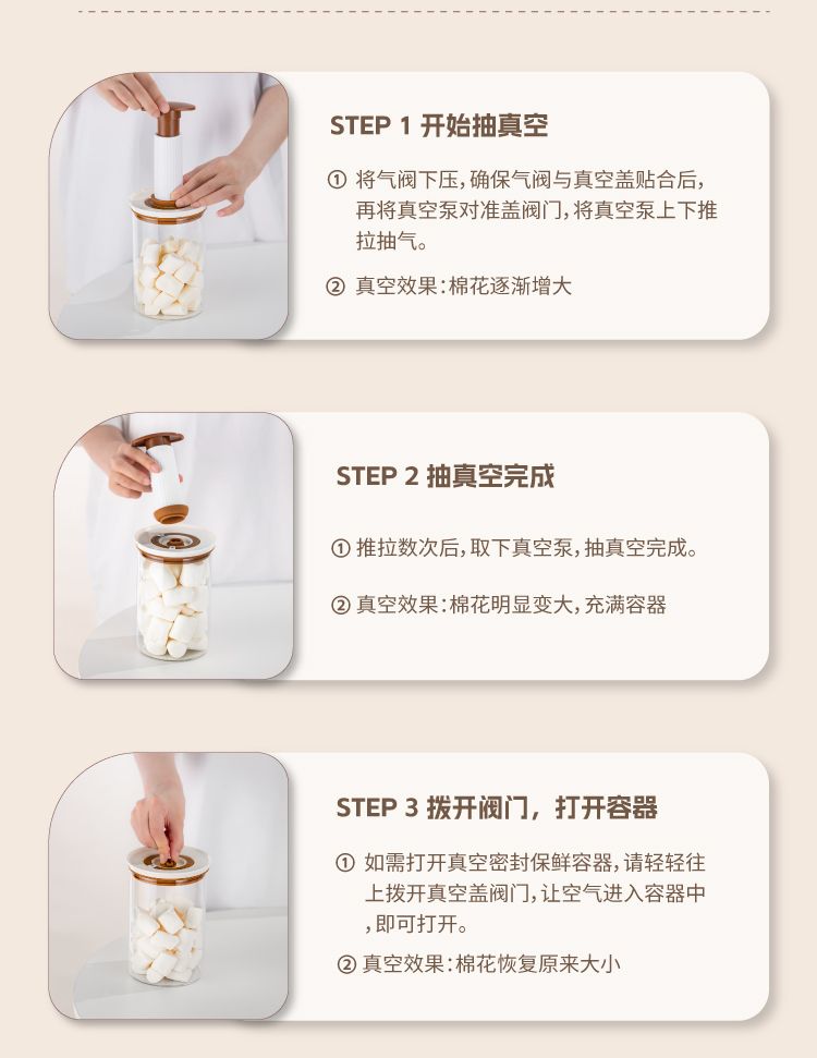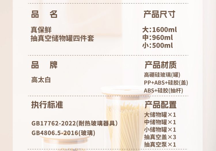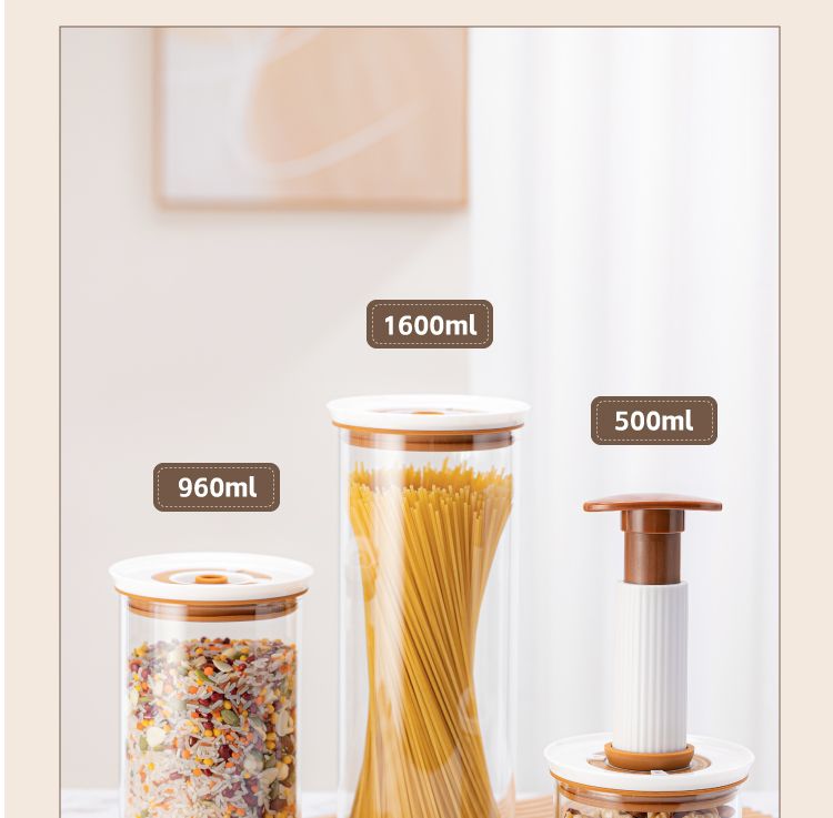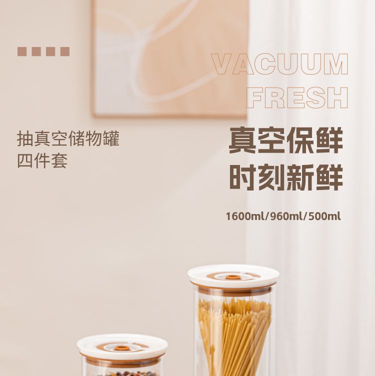 大储物罐1600ml*1,中储物罐960ml*1,小储物罐500ml*1,抽真空泵*1