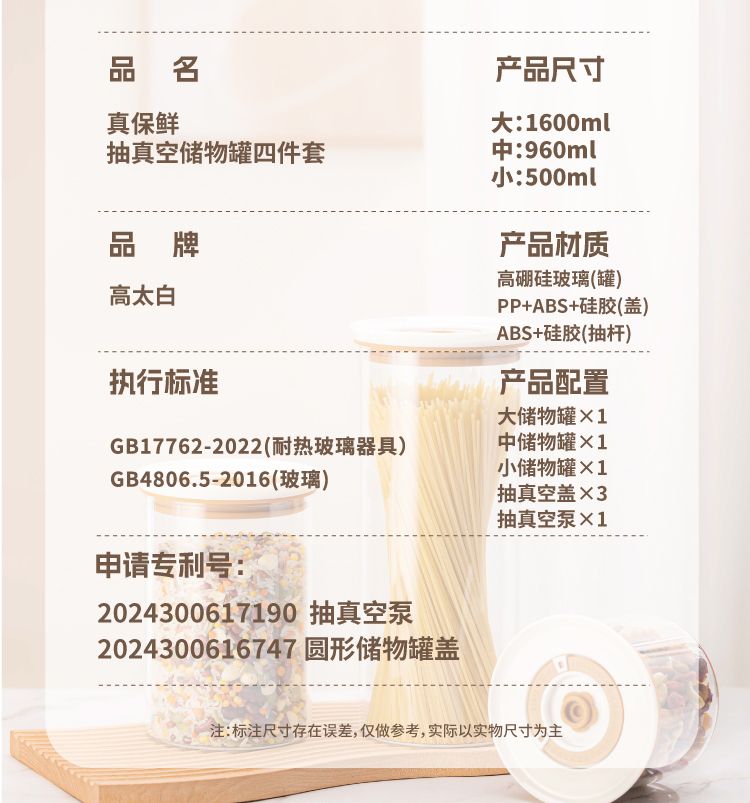 商品名称:高太白真保鲜·抽真空储物罐4件套GBXG005