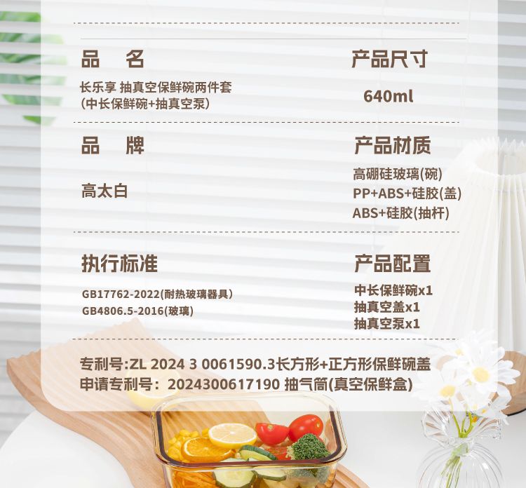 商品名称:高太白长乐享真空中号保鲜碗2件套GBXW011