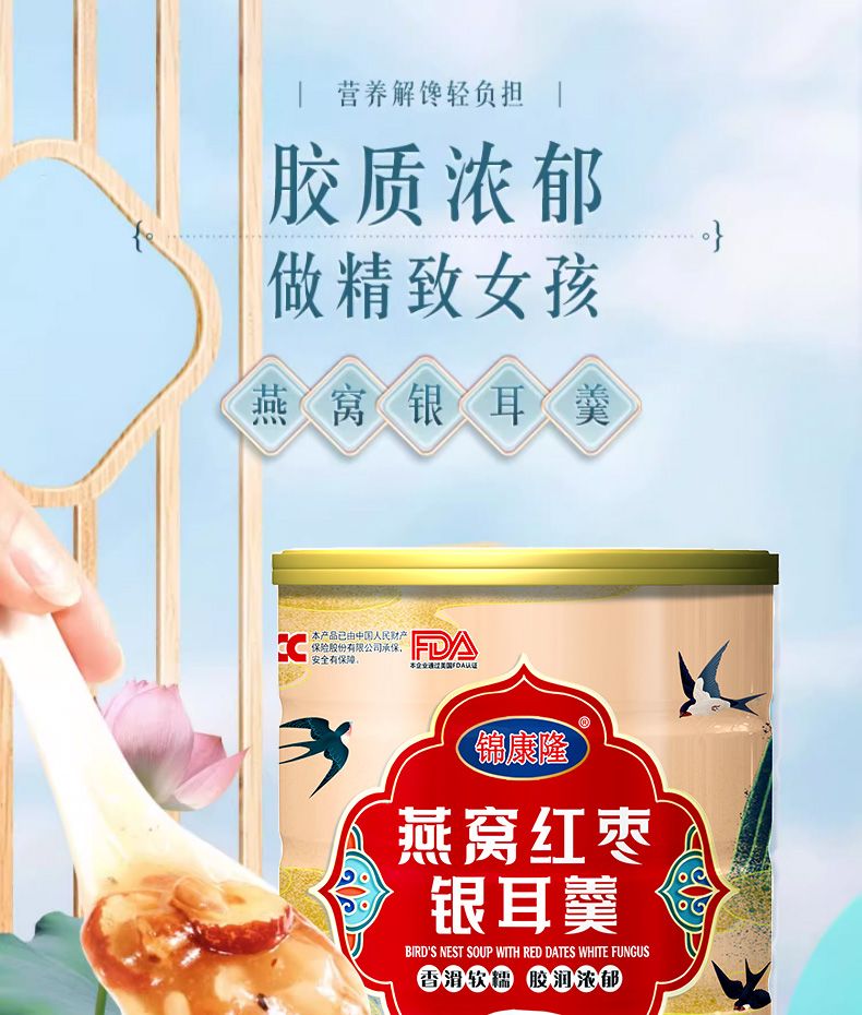 商品名称:锦康隆燕窝红枣银耳羹300g/桶(拍一发六)