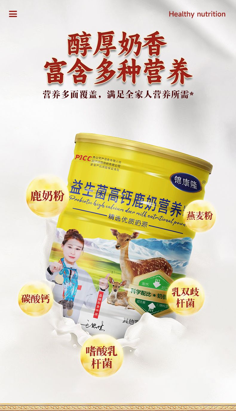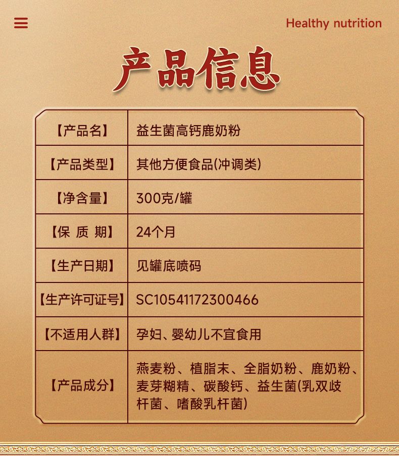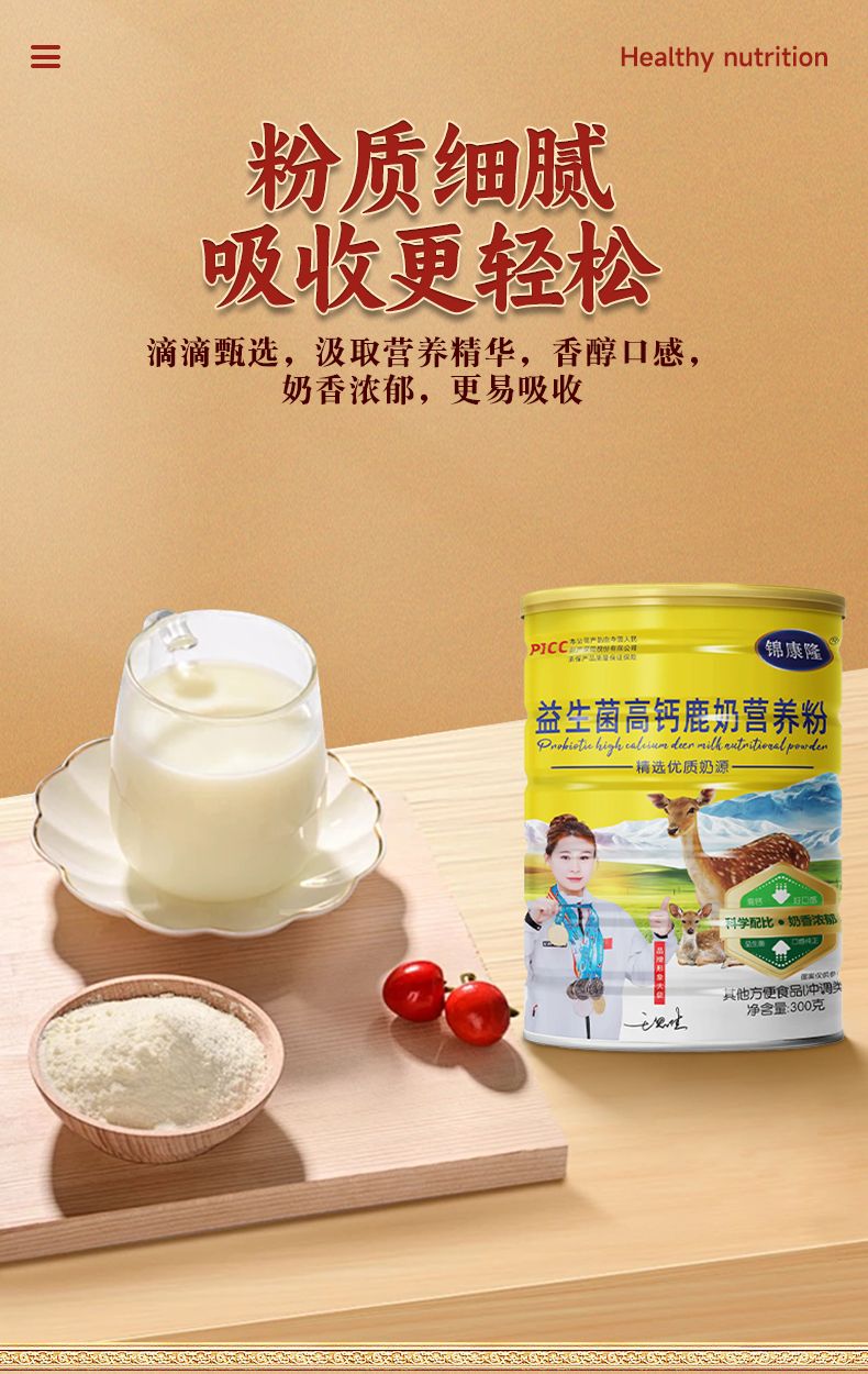 商品名称:锦康隆益生菌高钙鹿奶营养粉300克/桶(拍一发六)