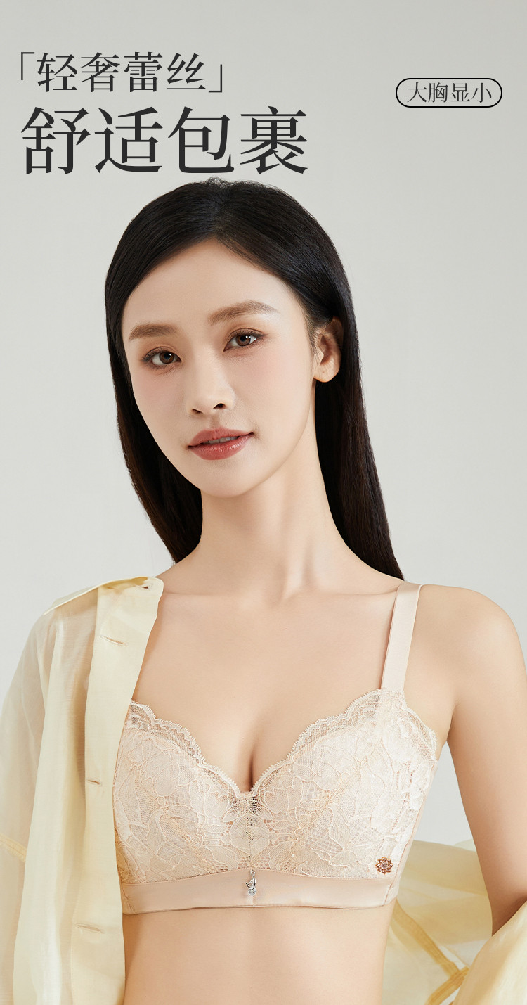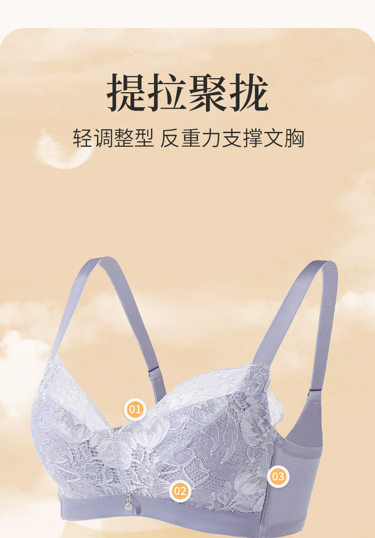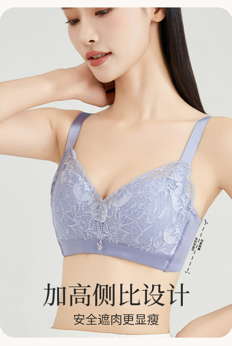 小胸聚拢侧收副乳文胸罩无钢圈舒适柔软性感蕾丝拼接女士内衣 463307